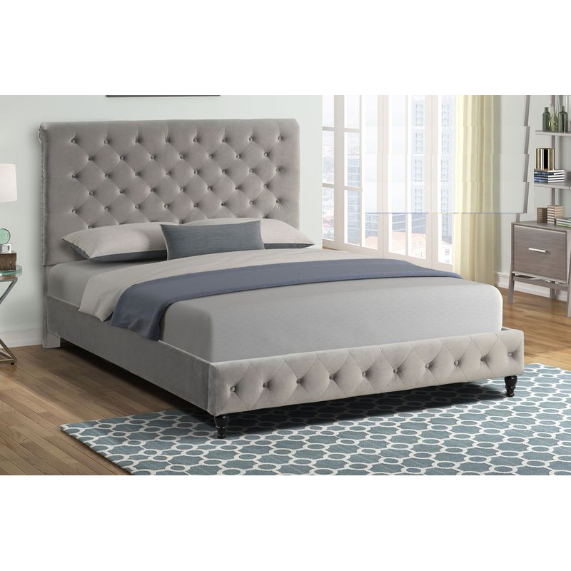 Best Master YY132-GY Grey velvet fabric tufted Eastern King bed