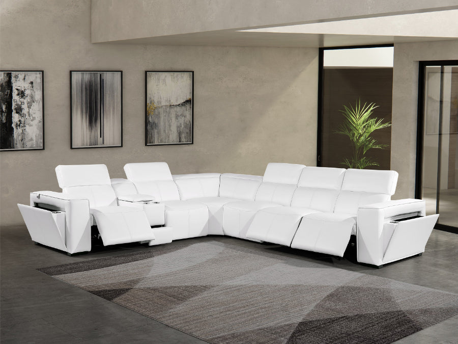 Global United 1224-BYO  Custom DivanItalia White, Black, Light grey, Dark grey, Beige Italian leather power reclining  power headrests modular sectional pieces custom configuration. This set features Italian leather, power adjustable headrests, power recliners and armless chairs, drink console with conductive phone charging plate, with power adjustable headrests and chrome legs. This is the build your own Set option, Choose which pieces and how many to build your own Sectional. Right and left arm facing Recliners (RAF / LAF) power recliners are the end units, you would need one of each to finish off any custom configuration. or if you are just purchasing additional pieces to add to an already built set online just choose the additional pieces. LAF /RAF end recliners measure 40″ W x 41″ D x 31″ -39″ H. ARPW (Armless power recliner) measures 27″ W x 41″ D x 31″ – 39″ H. AC (armless chairs) measures 27″ W x 41″ D x 31″ – 39″ H. CN (console with charging plate and cup holders) measures 13″ W x 41″ D x 27″ H. CNR (corner wedge seat) Measures 46″ x 46″ x 31″ H. These items are available in White, Black, Light Grey, Dark Grey, Cognac, Camel and Beige. Choose the piece and how many you would like and add to cart. Some assembly required.