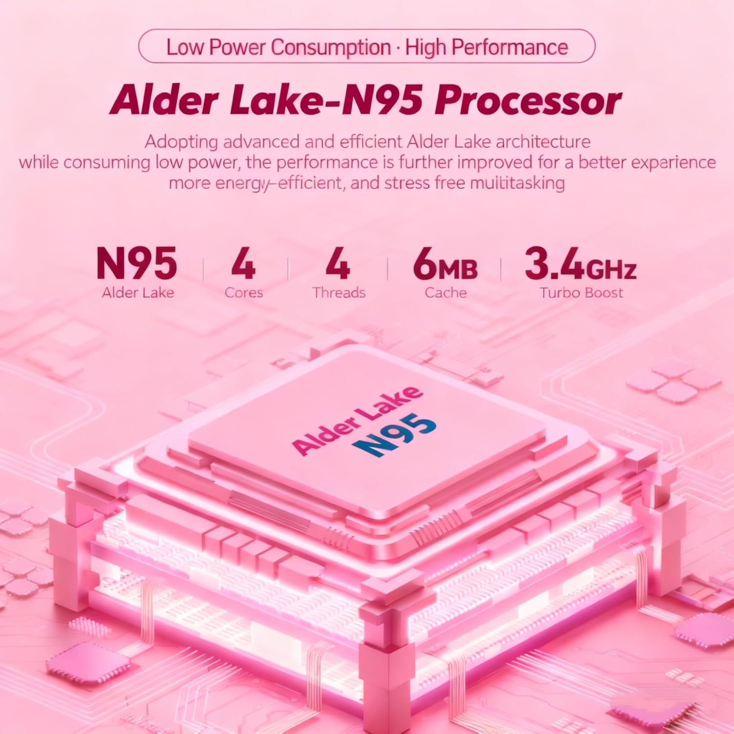Performance: 32GB DDR4 memory; 1TB PCIe SSD (upgradable to 8TB); N95 processor (4C/4T, 1.7-3.4 GHz); Win11 Pro preinstalled