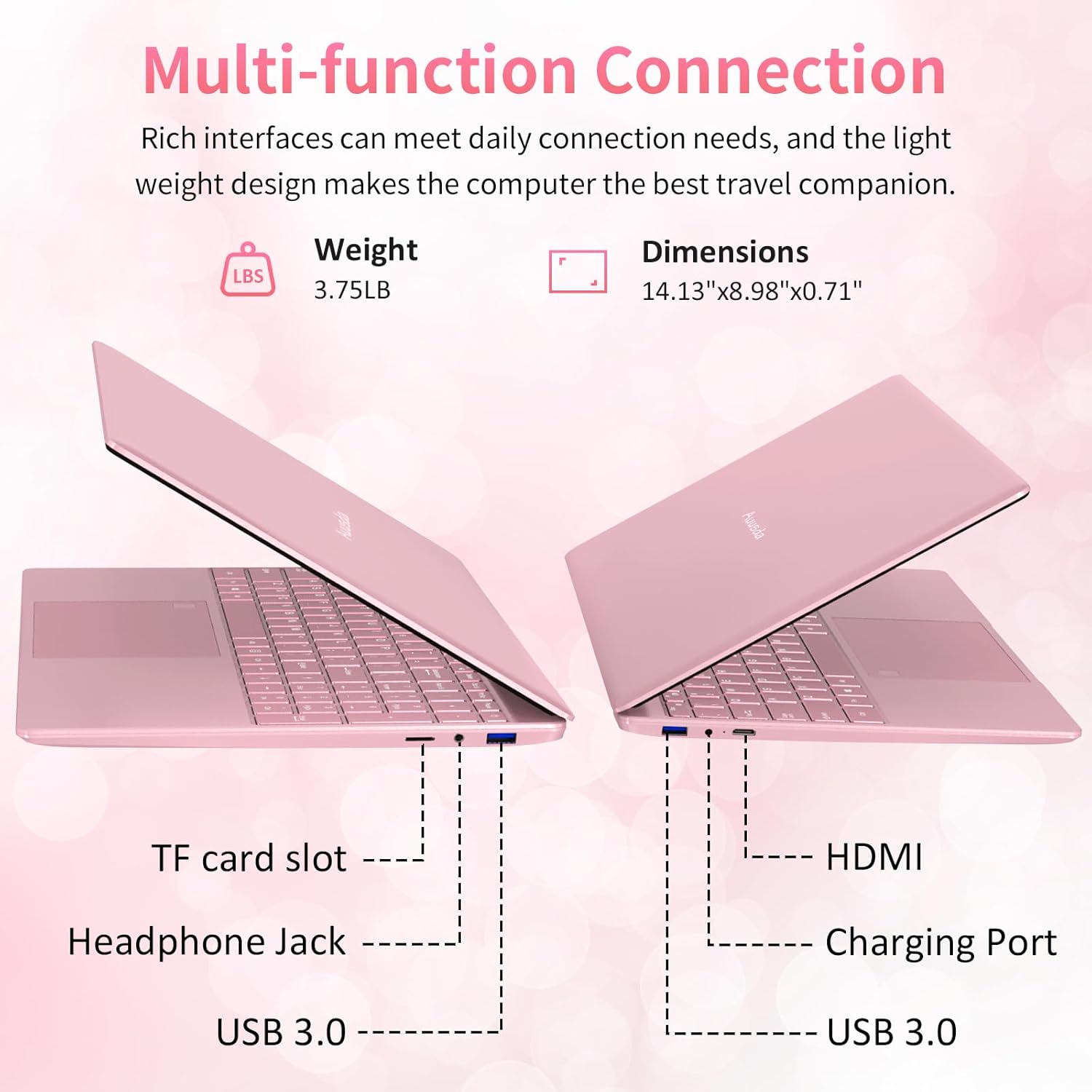 Ports: 2× USB 3.0 for fast data transfer; 1× MicroSD slot (supports up to 2 TB); Mini (or standard) HDMI output for 4K video; 3.5 mm audio jack (with microphone, right side); DC 3.5 mm round power port (12V 3A, left side)