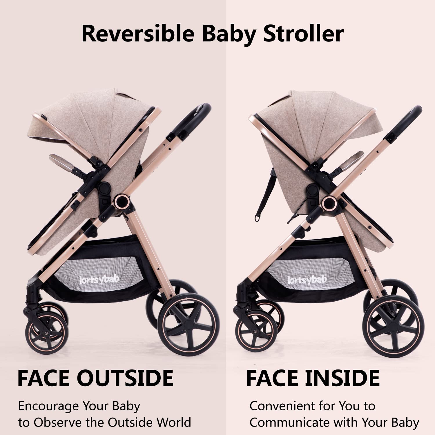 2 in 1 Baby Stroller: Our stroller can be a high landscape bassinet stroller, your baby can enjoy the scenery outside, and will not be polluted by automobile exhaust. The convertible stroller offers the flexibility for baby to face you or be able to see all of the scenery around them while facing outwards.