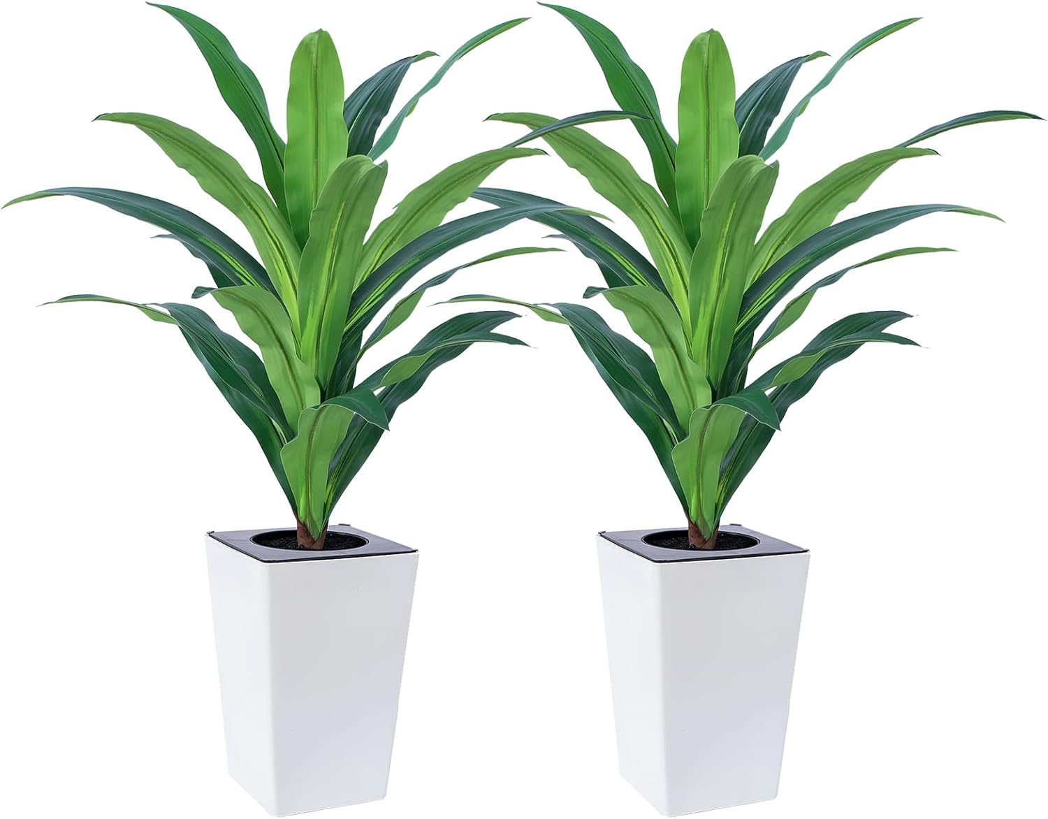 2 Pack Artificial Dracaena Tree with White Tall Planter 4FT-Tall Potted Faux Plants Indoor -Fake Floor Plant for Home Office Living Room Outdoor