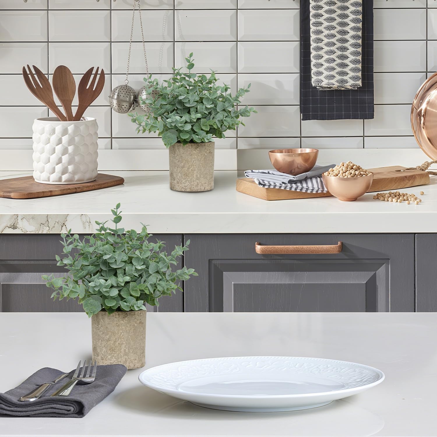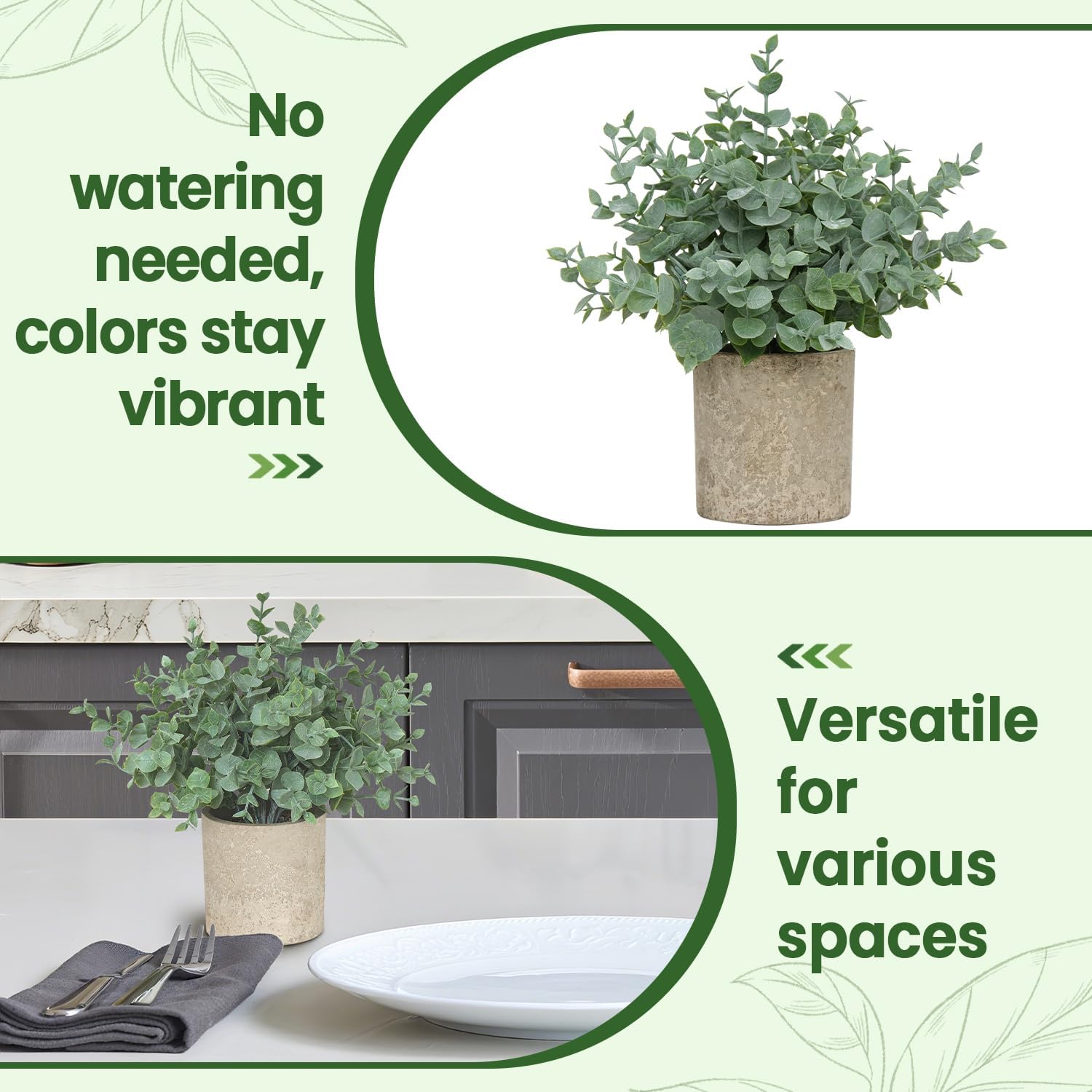 Versatile Home & Office Decor: Compact and lightweight, these small faux plants are ideal for brightening up your windowsill, desk, shelf, kitchen, bathroom, or office. Whether placed individually or as a set, they instantly elevate any space with a touch of greenery and a modern farmhouse aesthetic