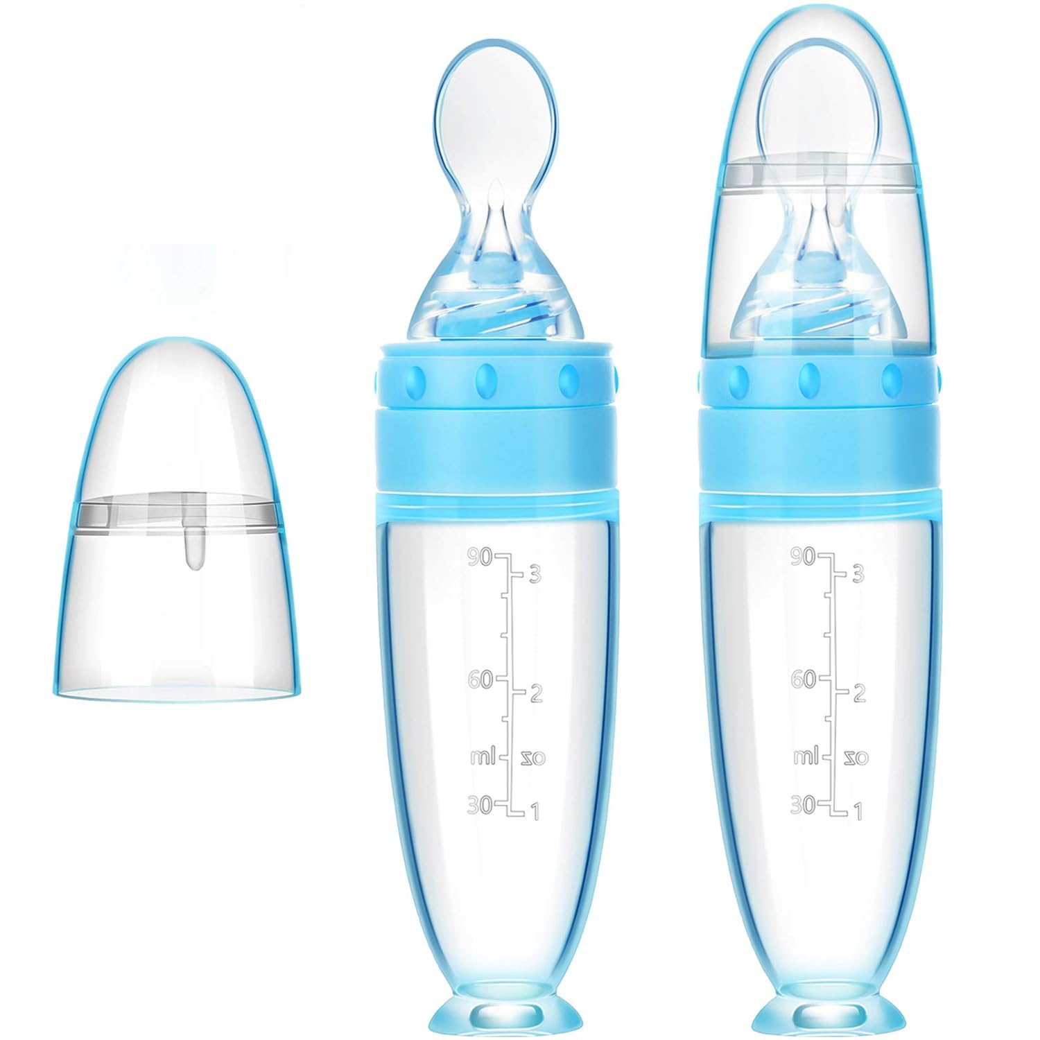 Using and cleaning: simply fill the silicone bottle with the pureed food and gently press until the desired amount collects on the spoon to feed baby; Disassemble the bottle and put it into water after using