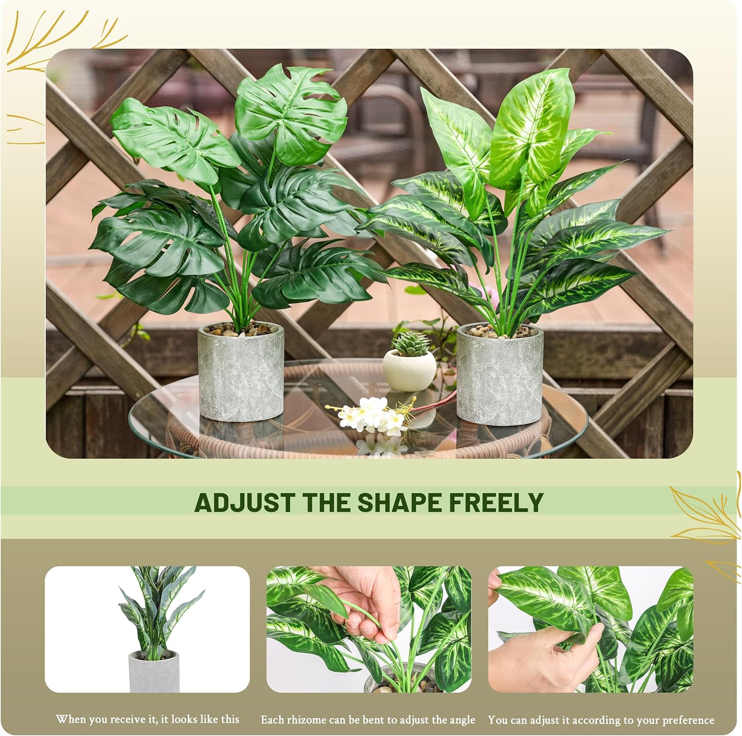 Safe Transportation: Our fake plants arrive heavily sealed and wrapped. You have to bend the stalks out and arrange them a little to make them look great for decoration