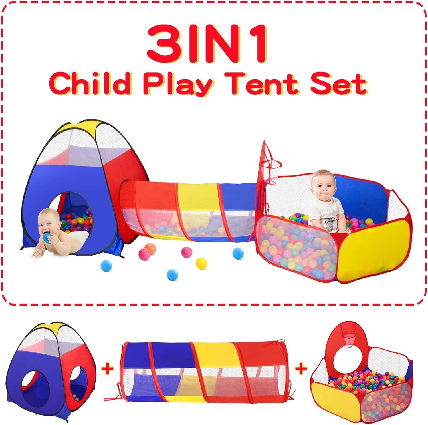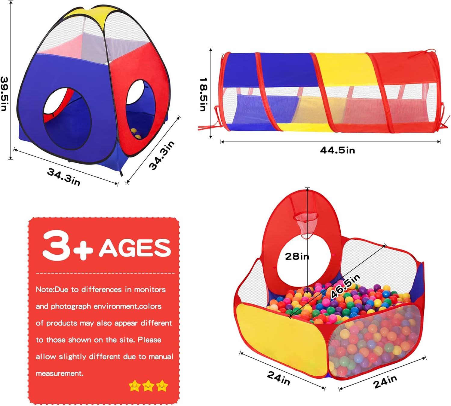 3 in 1 Kids Play Tent for Toddler with Baby Ball Pit and Play Tunnel, Children Indoor Outdoor Playhouse with Climbing Tunnel Toy for Toddlers, Boys and Girls Best Birthday Gifts(No Balls)