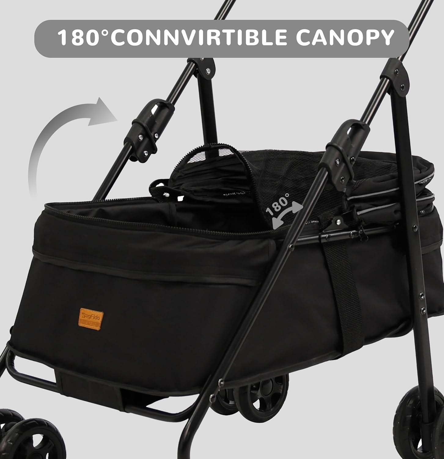 【Unleash the Joy of Freedom】The front universal wheels(360-degree swivel) of the cart can easily change directionand move forward more flexibly.The 4.5-inch rear wheels glide effortlessly through any adventure.Perfect for senior or paralyzed dogs needing gentle strolls or energetic puppies out for a jog. Our dog stroller is the passport to endless joy for your dog, cat, or even your loving bunny, ensuring every journey is a breeze.