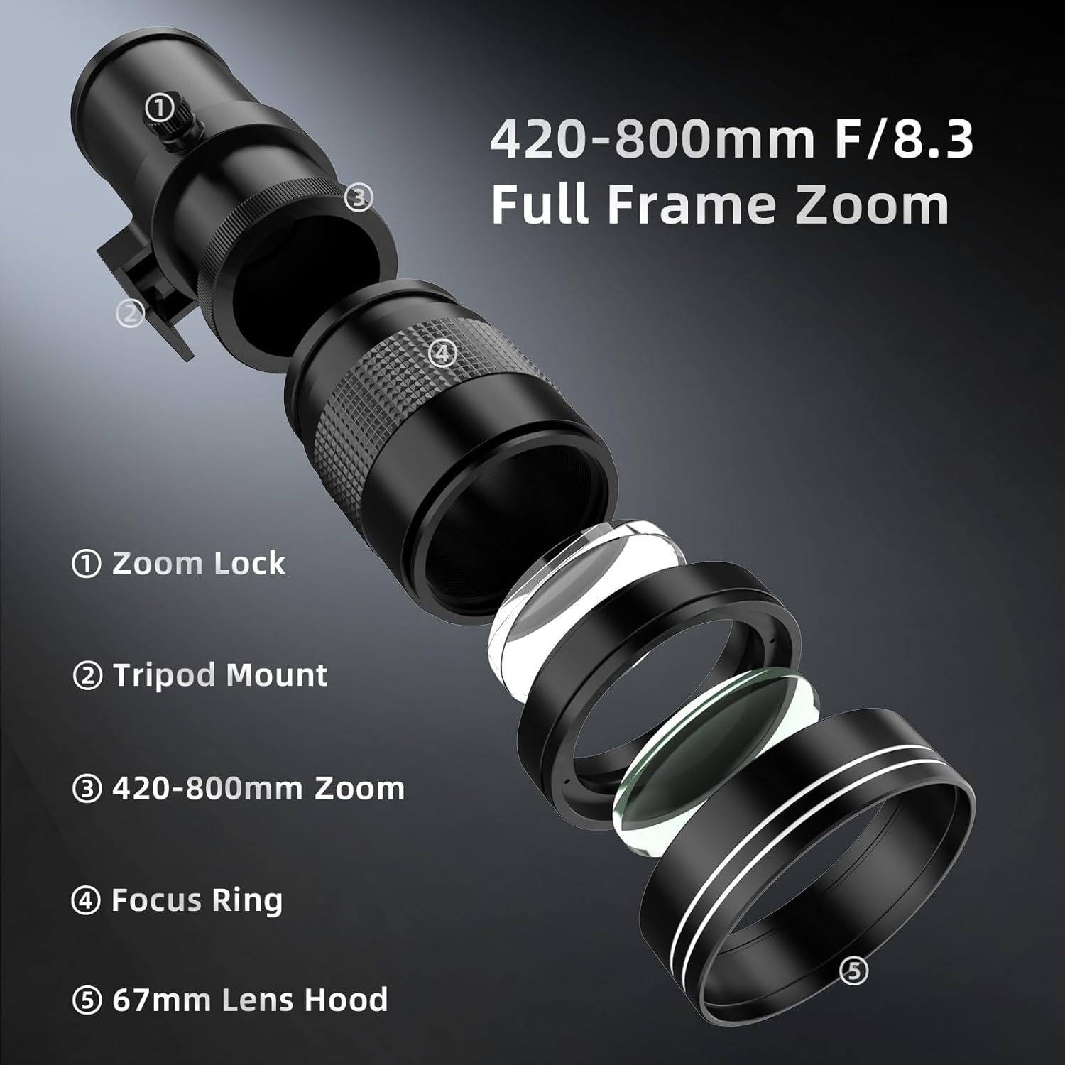 【420-800mm F/8.3 Full Frame Zoom】Experience the freedom of a massive 420-800mm focal range. Effortlessly zoom in on the intricate craters of the moon, frame warblers in leafy canopies, or capture the cautious gaze of wildlife in its natural habitat – all from a respectful and safe distance. Stay put and let the lens bring the action to you