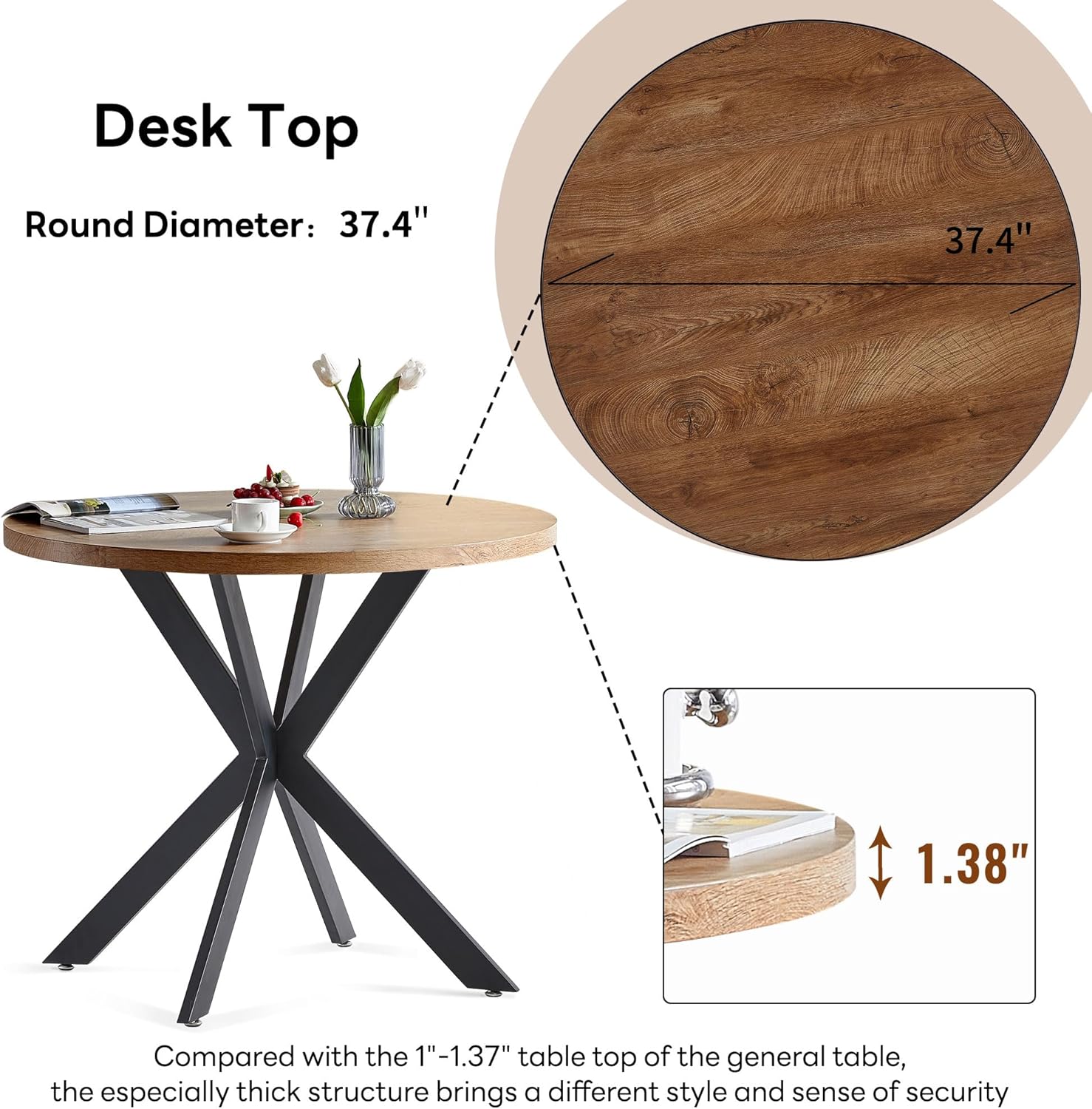 This 37-Inches Round Table with Sturdy Metal Legs, 1.38-Inch Thick Faux Wood Tabletop