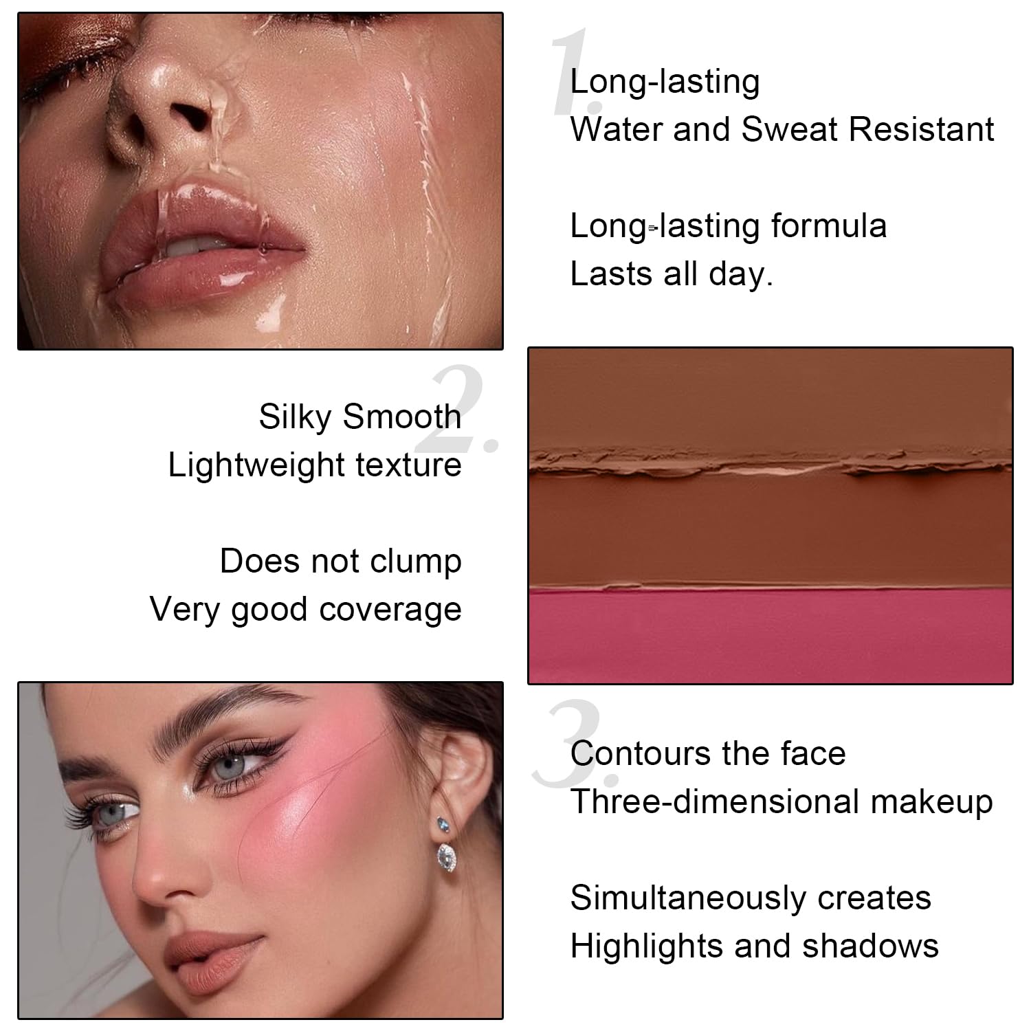 【Long-Lasting & Waterproof】 Our highlight contour stick is made with waterproof ingredients, it is long – lasting, water-tight and sweat-proof. So you can still maintain a delicate makeup without falling off if you sweat after exposure to water or exercise.