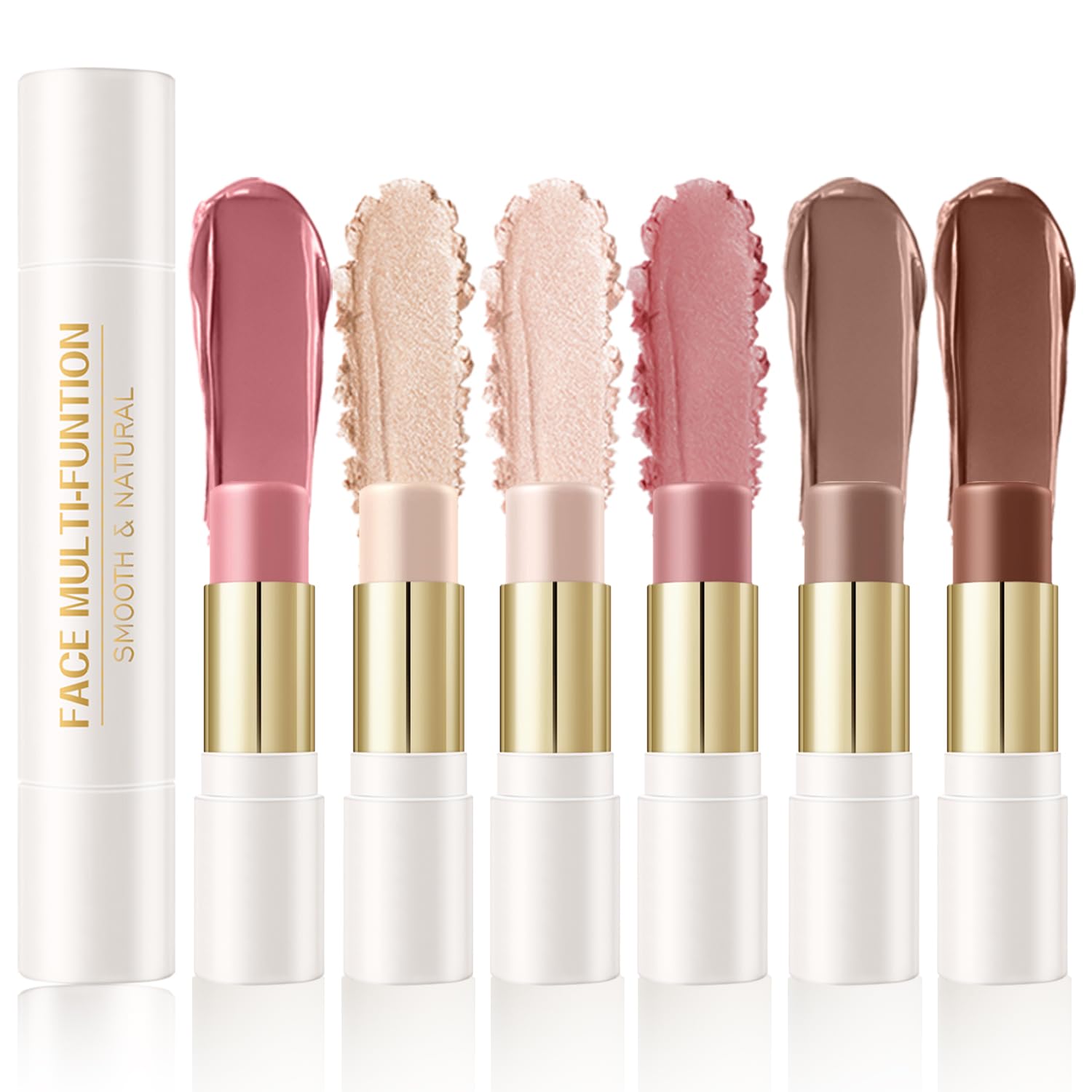 【Dual-Ended Design, Triple the Value】 3 compact sticks deliver 6 professional shades: 2 creamy blushes, 2 luminous highlighters, 2 buildable contours. Switch shades in one twist—no fumbling for multiple products!
