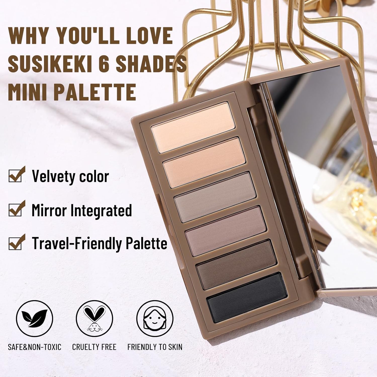 【Professional Neutral Tones】Elevate your eye makeup game with the SUSIKEKI min eyeshadow palette. This carefully curated pallet features six stunning shades of neutral tones, ranging from soft taupes to rich browns. Create versatile looks with ease, perfect for both makeup beginners and professionals.