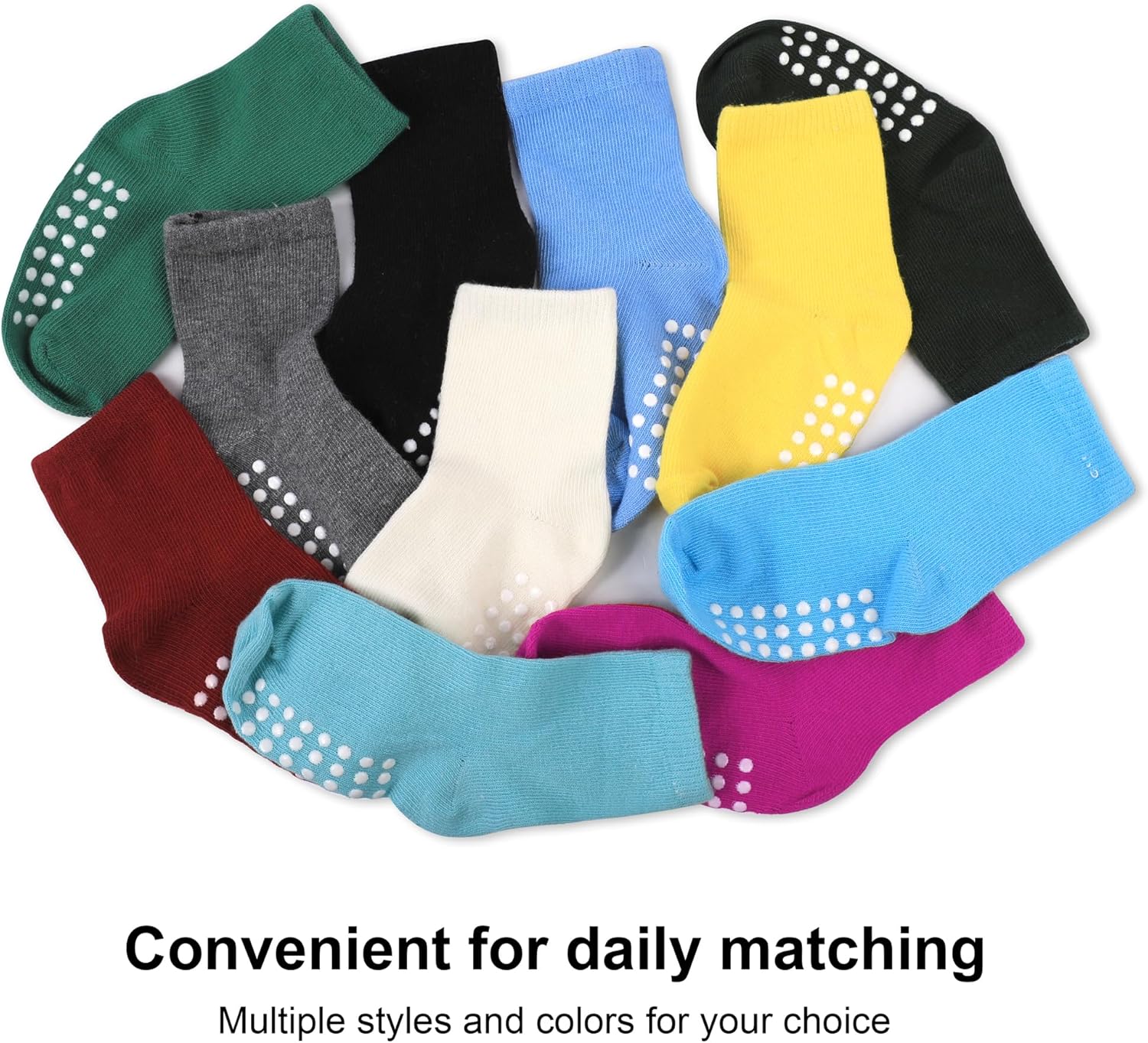A variety of styles and color combinations: 4 pairs/5 pairs/6 pairs/8 pairs/10 pairs/12 pairs, six different quantities of children’s socks combinations, a variety of popular color styles for your choice. Convenient for you to match your kids’ different clothes and shoes.