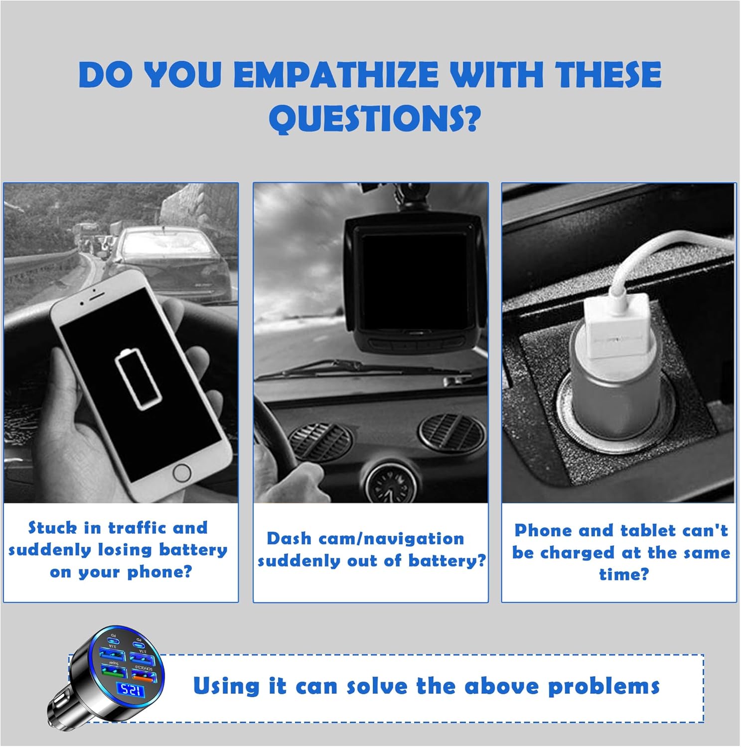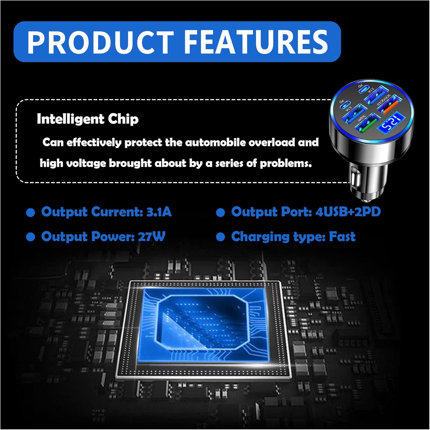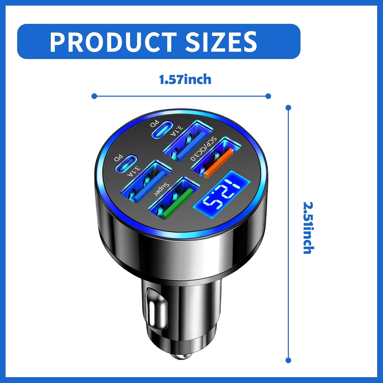 🔌 SIX PORT CAR CHARGER – The USB car charger is designed with six ports, including one SCP/QC 3.0 port, one super fast charging port, two 3.1A ports and two PD ports. It can easily realize six ports charging at the same time to meet your power needs for multiple car devices, which is a must-have car interior accessory for your long-distance travel!