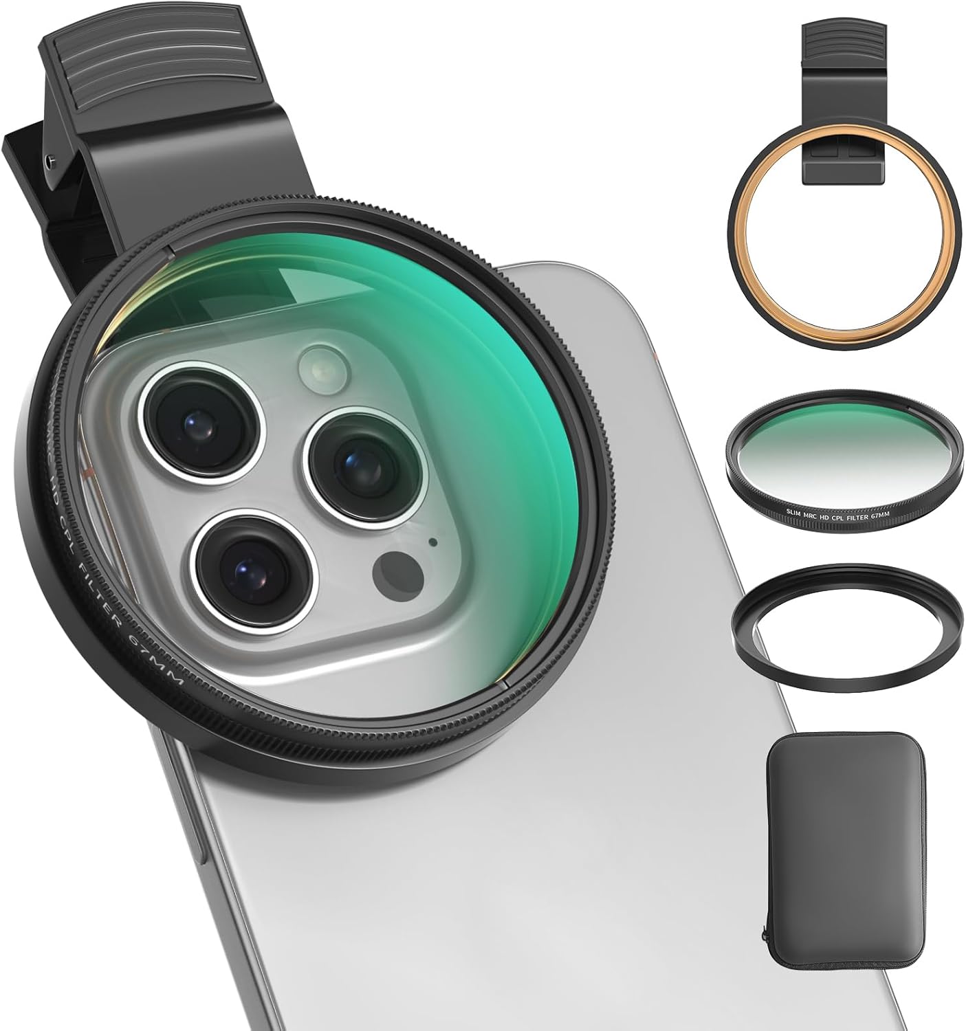 【2-IN-1, CPL Filter for Phone & 58mm/67mm Camera】: Widely compatible, this clip on 67mm circular polarizer filter kit is designed for all smartphones and any DSLR cameras with a 58mm/67mm filter thread. The newly upgraded universal cell phone clamp is compatible with iPhone 17 16 15 14 13 12 11 Samsung Galaxy S25 S24 S22 Ultra and other models. Essential photography accessories for professional content creators and must-have gear for influencers. (Includes 58mm-67mm threaded adapter ring)
