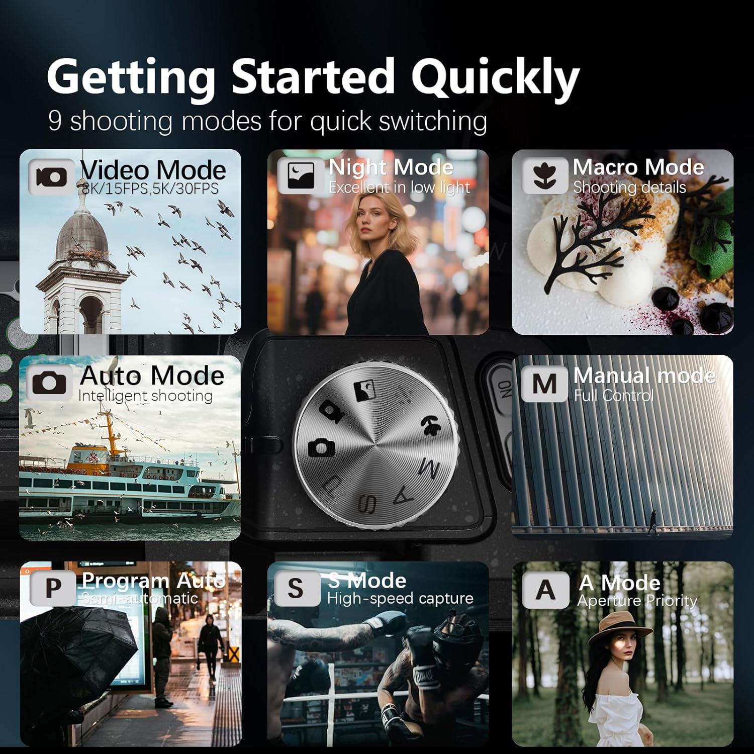 Rotate the mode dial on the top of the camera to quickly switch between photo/video and other modes.