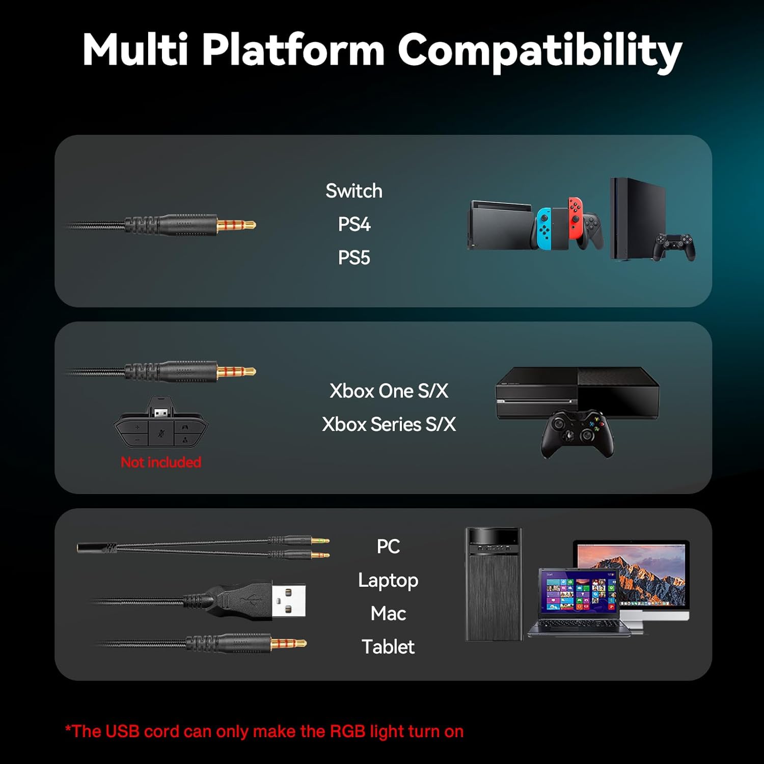 【Multi-platform Compatible】 Gaming headset with microphone for PC, PS4, PS5, Xbox One Series X/S (older version requires adapter), Nintendo 3DS, Switch, Laptop, PSP, Tablet, iPad, Computer, Mobile Phone, 3.5mm jack device.