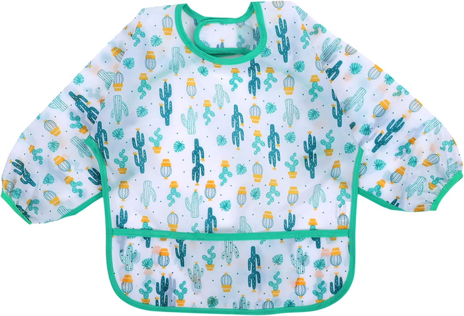 Long sleeve offering more coverage . The elasticized cuff fits your baby’s wrist, so it helps prevent food from getting up the sleeves.