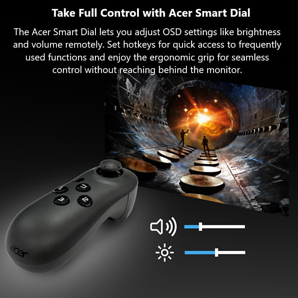 Take Full Control with Acer Smart Dial: The Acer Smart Dial lets you adjust OSD settings like brightness and volume remotely. Set hotkeys for quick access to frequently used functions and enjoy the ergonomic grip for seamless control without reaching behind the monitor.
