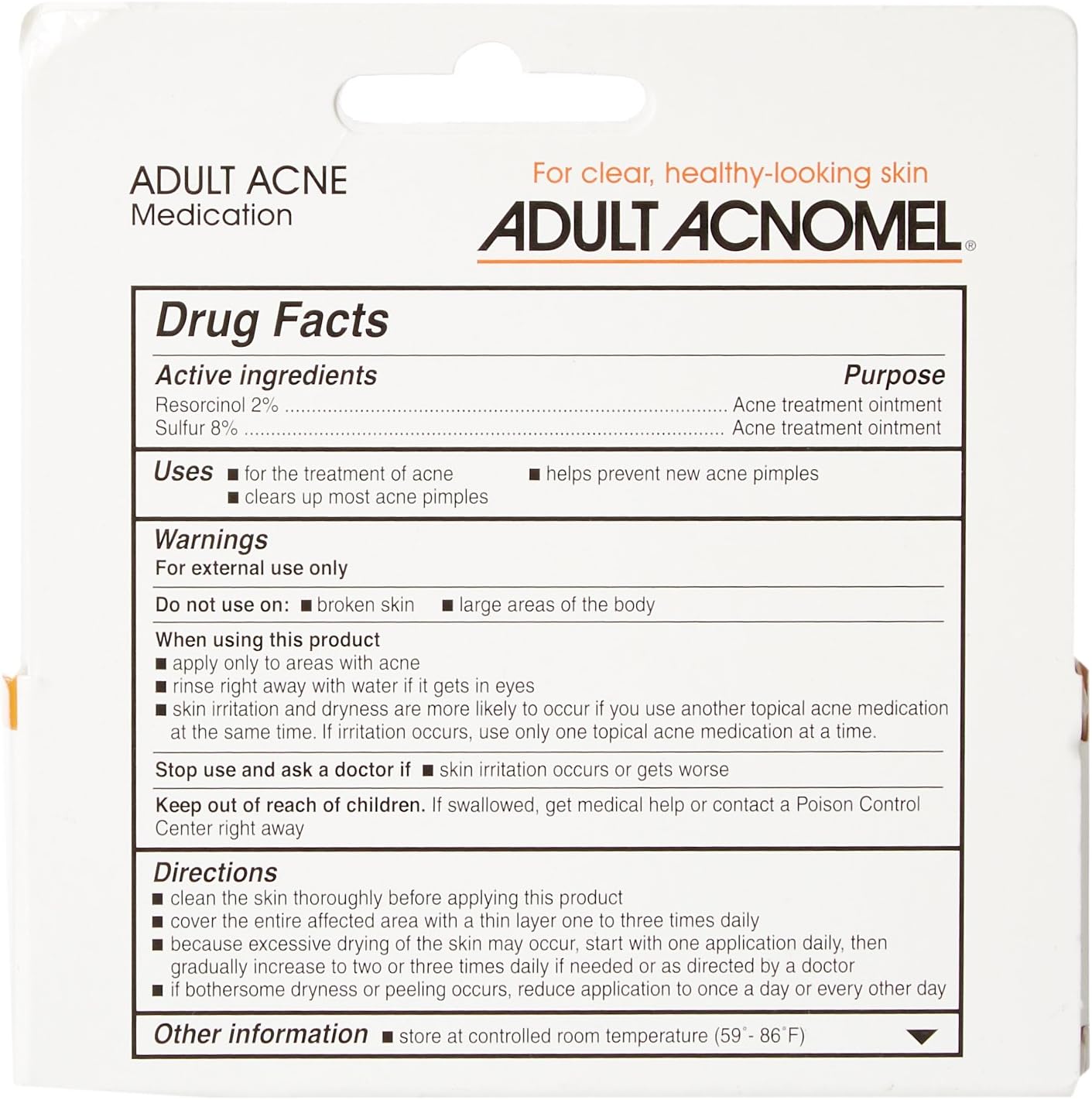 Adult Acnomel adult acne medication tinted cream clears up acne pimples and helps prevent new ones from forming. It is an effective treatment of adult acne & blemishes. Helps improve skin texture affected by Rosacea. Less drying does not contain Benzoyl Peroxide.