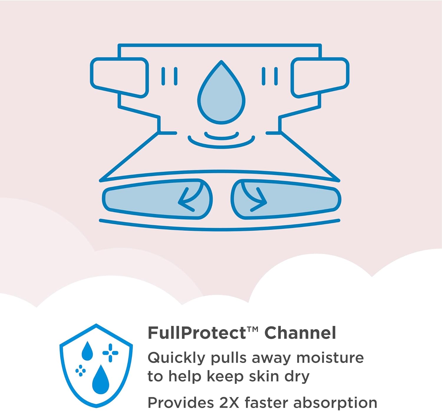 FullProtectTM Channel dryness technology quickly pulls away moisture to help keep baby dry with up to 12 hours of leak protection