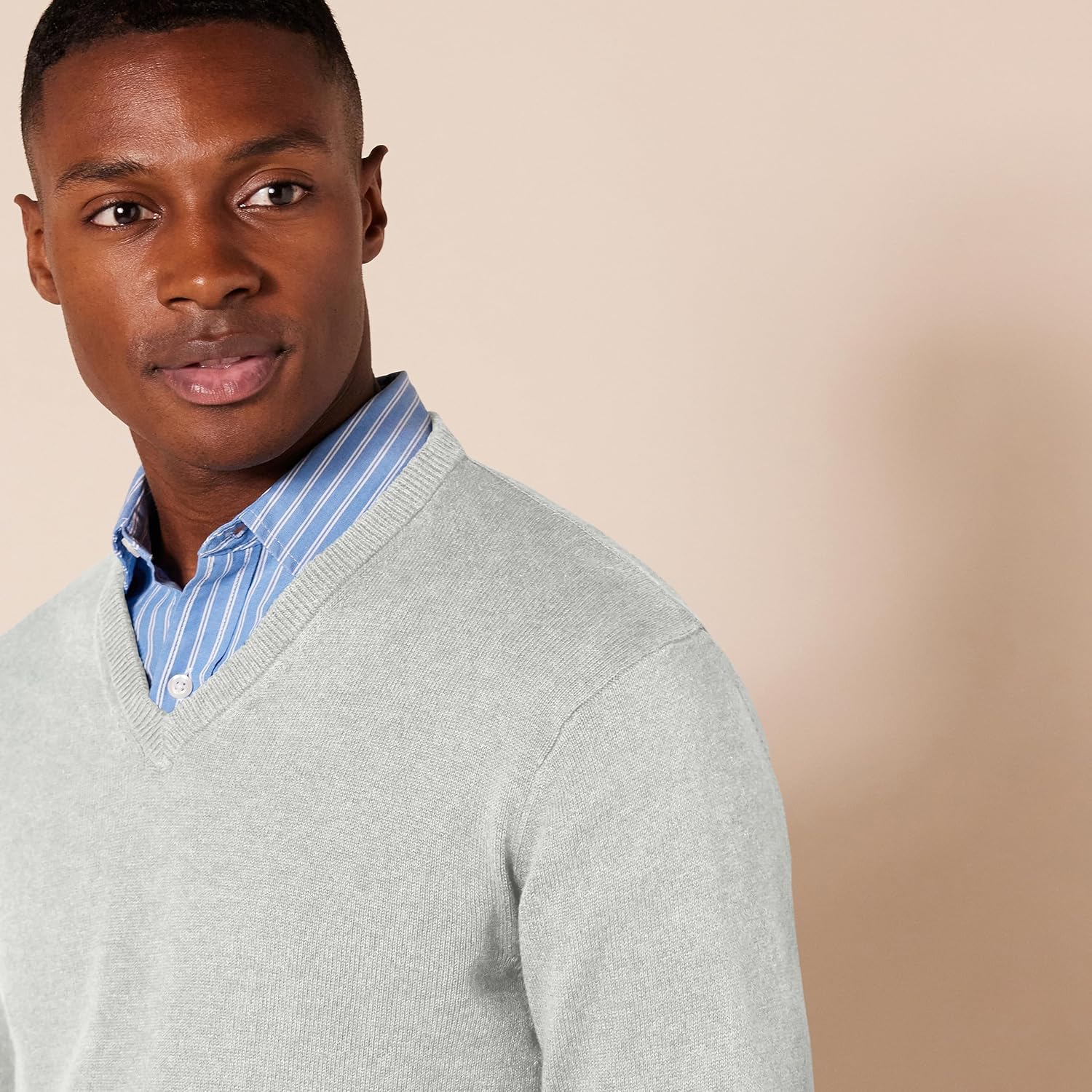 An Amazon Brand – This classic V-neck sweater features ribbing on the collar, hem, and cuffs to keep you warm