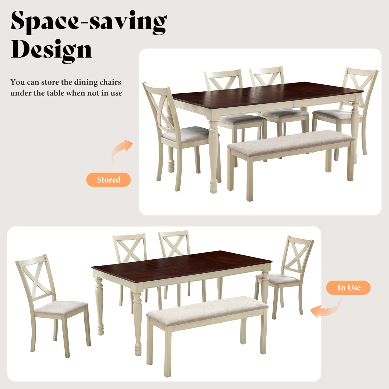 Easy Assembly: Included all required accessories and detailed instructions, assemble this 6-piece dining set quickly and easily. Please ensure the dining table set size fits your space for optimal use
