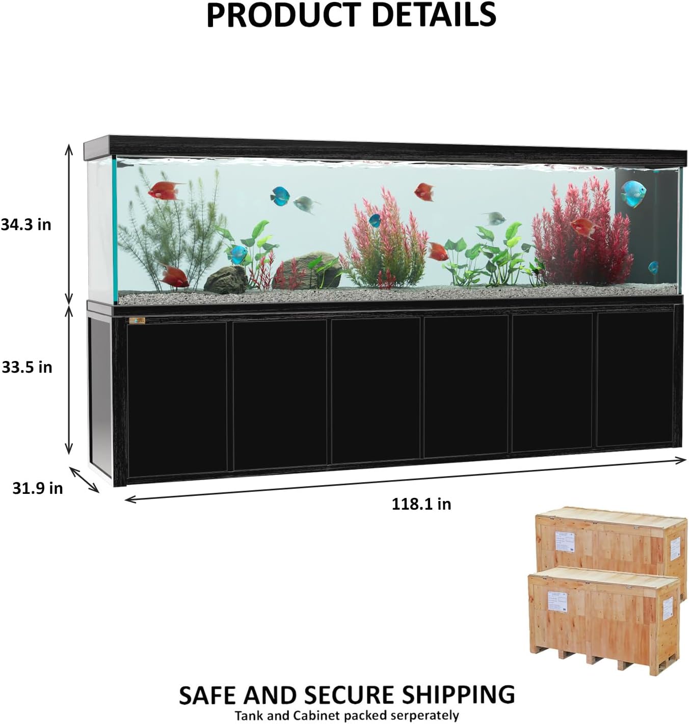COMMERCIAL GRADE 500+ GALLON AQUARIUM: Designed for professional display, this huge fish tank with stand combines a 345-gallon display with a 165-gallon sump for over 500 gallons total capacity. Ideal for housing large marine life or creating a display reef tank.