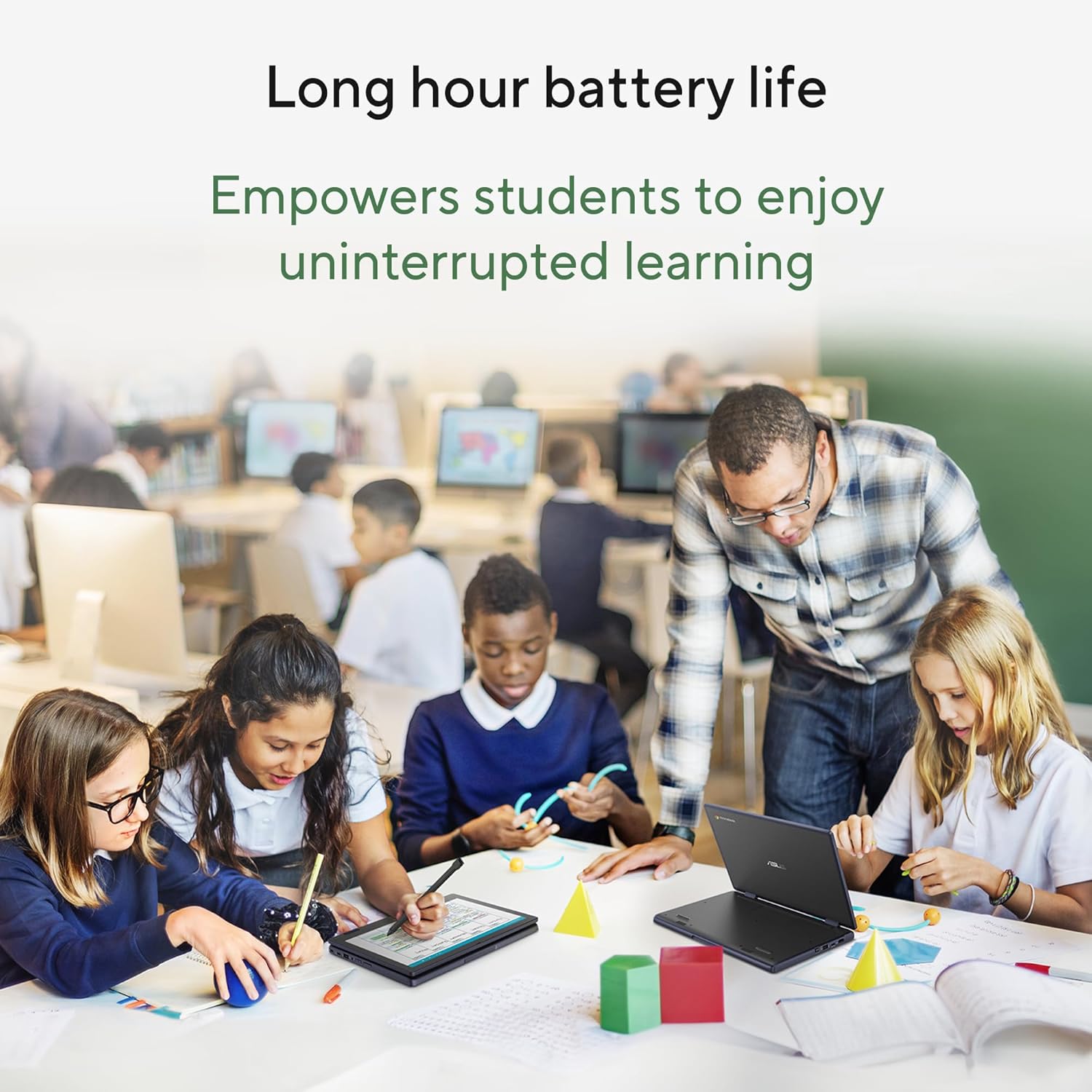 ASUS Chromebook CR11 provides a range of versatile tools and capabilities tailored for the needs of K-12 students. Its rugged and modular design, featuring replaceable internal parts, guarantees both durability and longevity. With a spacious 11.6-inch screen and 180° lay-flat design, ASUS Chromebook CR11 offers flexibility for enriched educational experiences. This design fosters the adventurous mindset of modern students, ensuring an enjoyable and secure learning journey, whether they’re engaging in online courses or in-class sessions — ready for every learning journey.