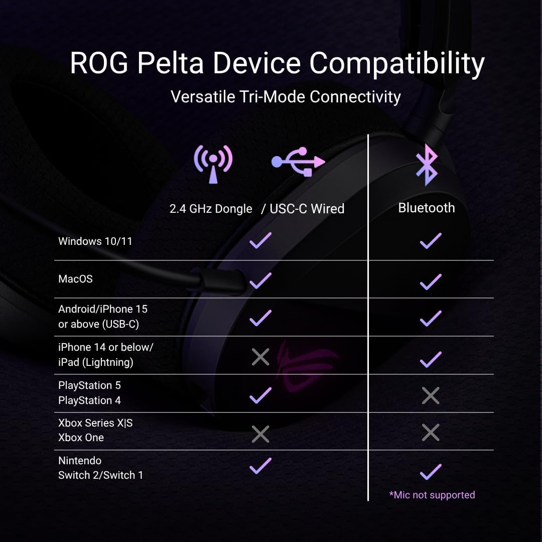 Multi-Platform Compatibility: Works seamlessly across multiple devices including PC and Mac, consoles such as PlayStation (PS4/PS5), Nintendo (Switch 1/Switch 2), and mobile. The ROG Pelta is also the top choice as a ROG xbox Ally / Ally X accessories and headset.