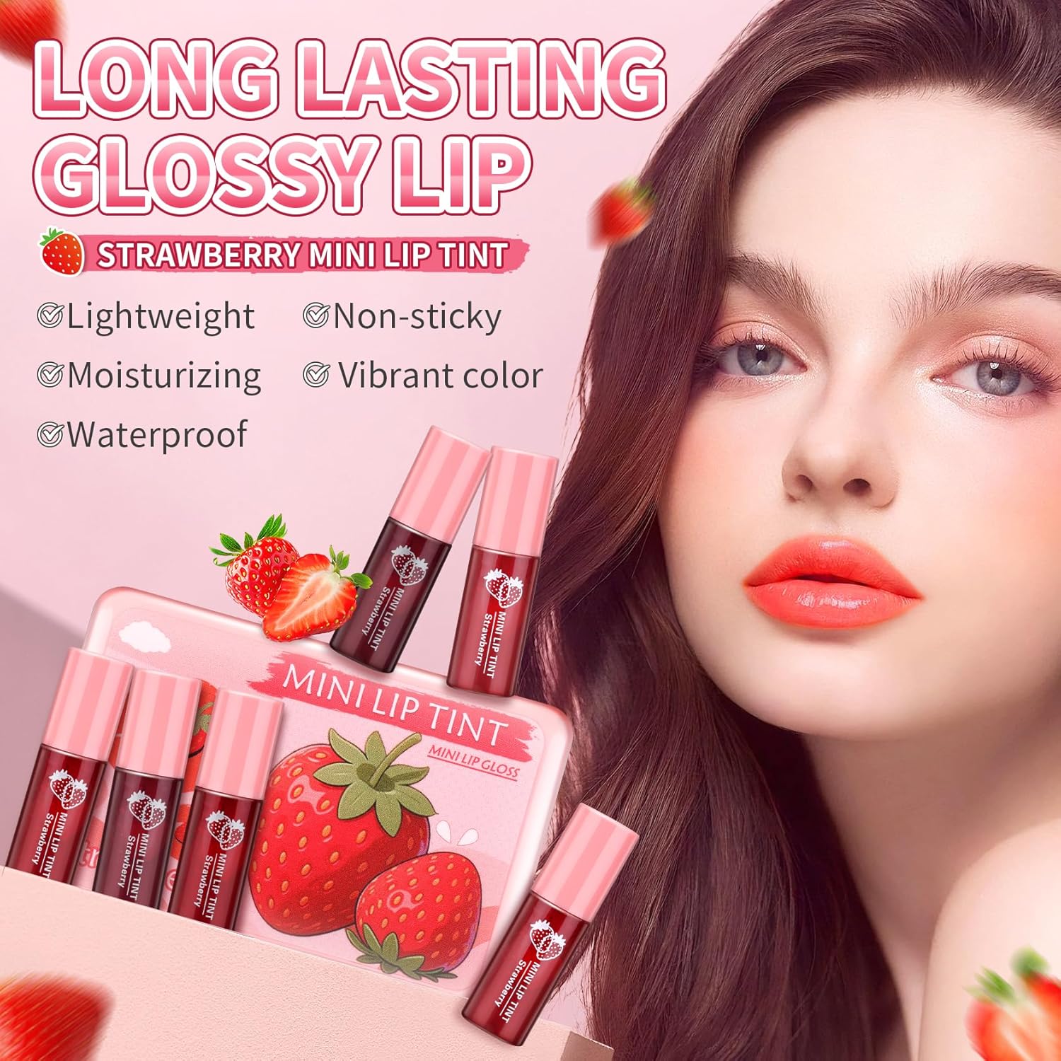 LIP GLOSS SET: Mini lip stain has 6 colors with high colority and rich color. Light in texture, hydrating and moisturizing. Create different appearances on the lips, cheeks and eyes to showcase natural bright