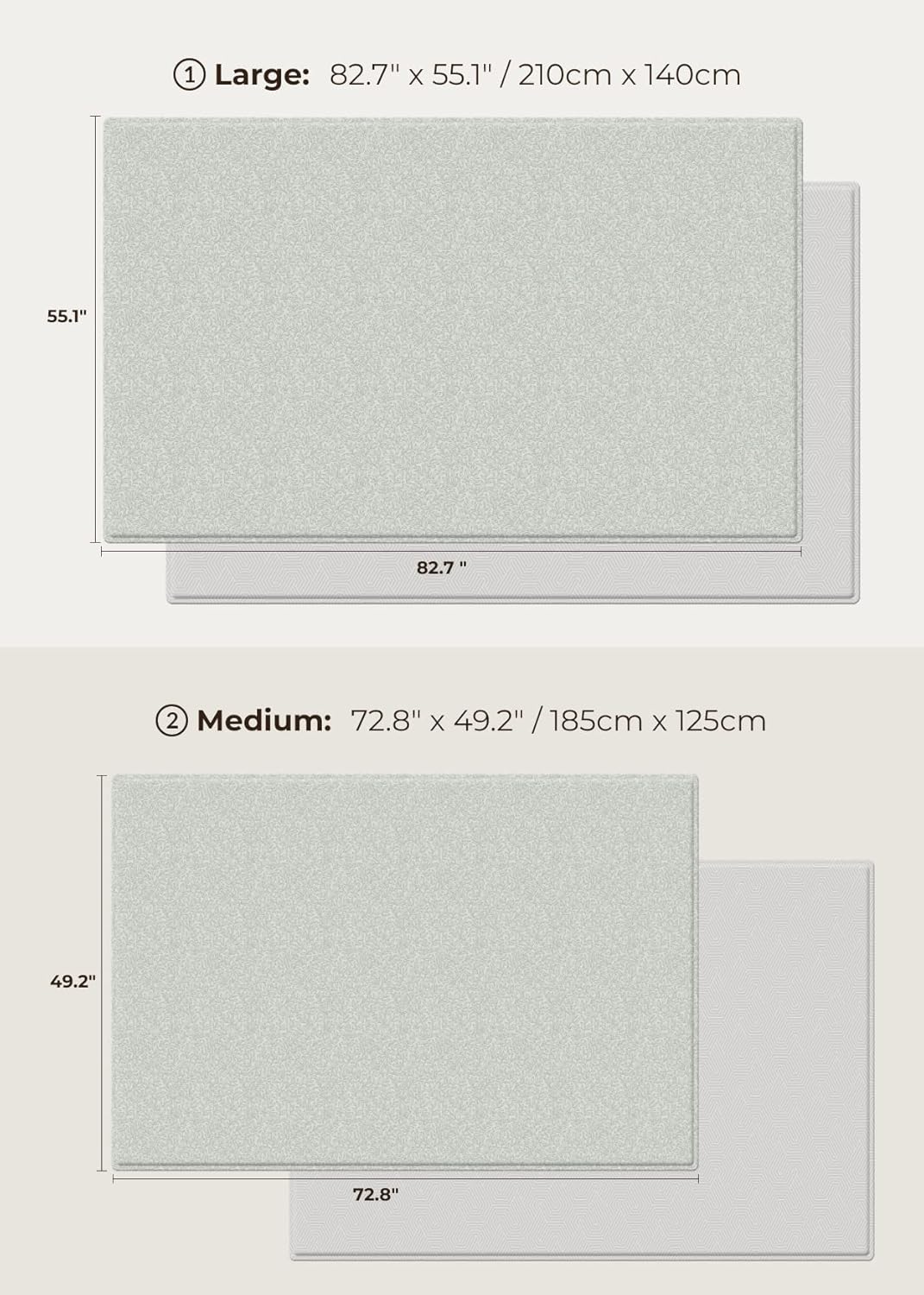 Large: 82.7 x 55.1 x 0.5 inches / 56 x 8.4 x 8.4