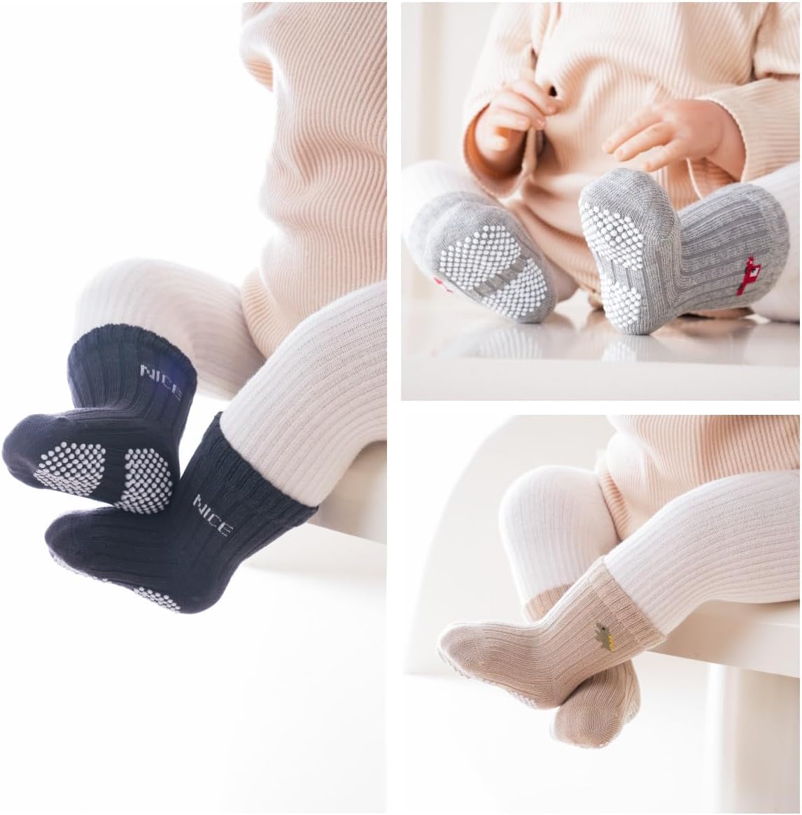 There are 4 sizes of this baby boy socks to choose,3-12 months,12-24 months,2-3years and 3-5 years The crew socks with grippers are perfect gifts for active baby boys and Girls infants, toddlers and kids.