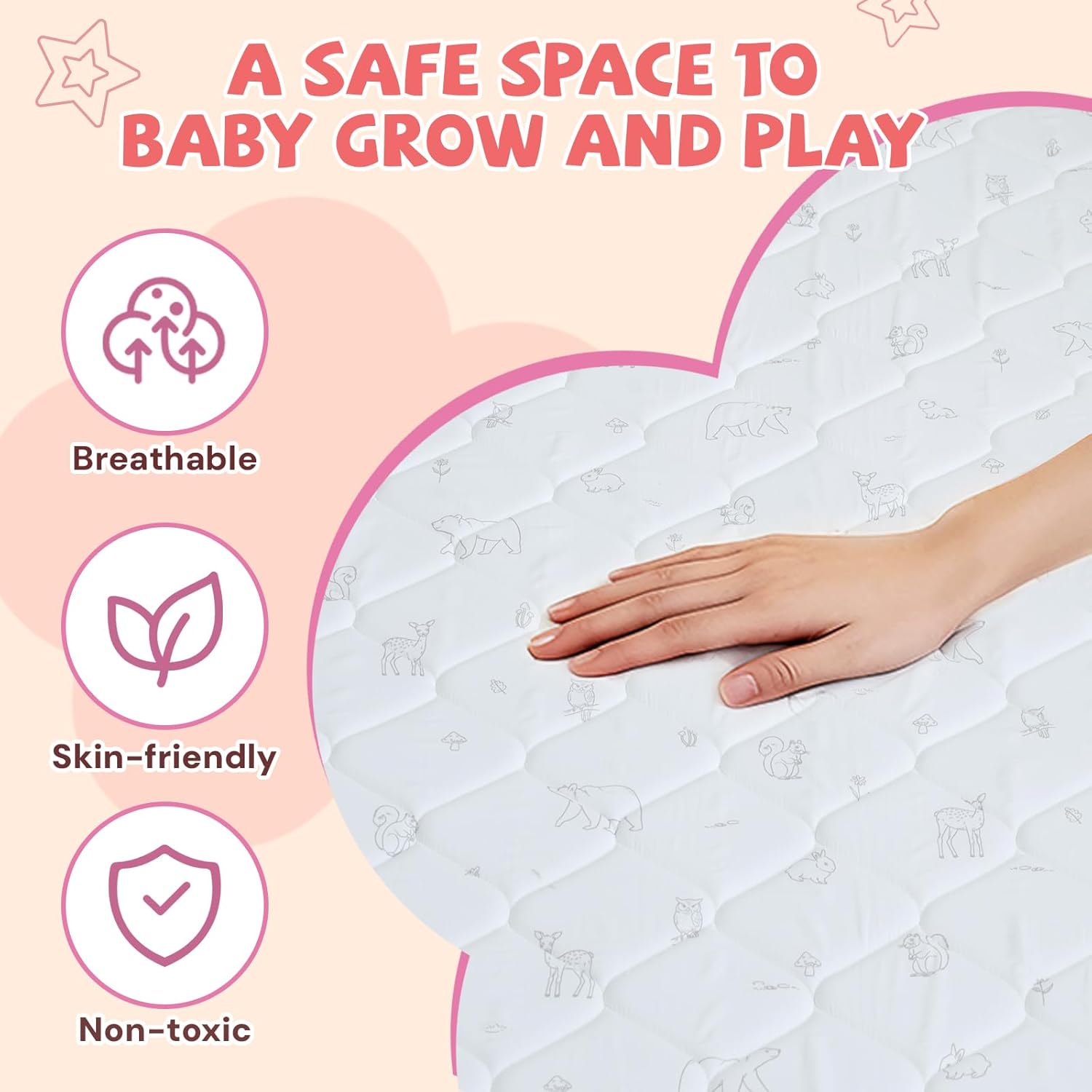 Ultra-Plush & Supportive Comfort – Crafted with premium soft-filled foam and a waterproof, breathable fabric top layer, our extra-thick infant playmat creates the ideal cushioned surface for tummy time, crawling practice, and early motor skill development. The breathable, non-toxic materials provide a comfortable and safe exploration space for your little explorer.