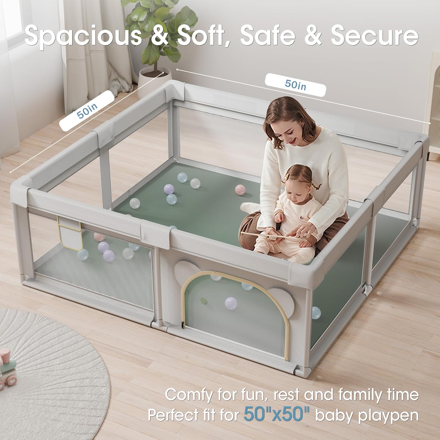Perfect Fit & Versatile Use: The playpen mat fits 50″ x 50″ playpens, suitable for any indoor space not only for living room or nursery. This versatile mat is indispensable in a family, it can be used as an area for baby to crawl and learn to walk, as an outdoor picnic mat, or for interactive family moments.