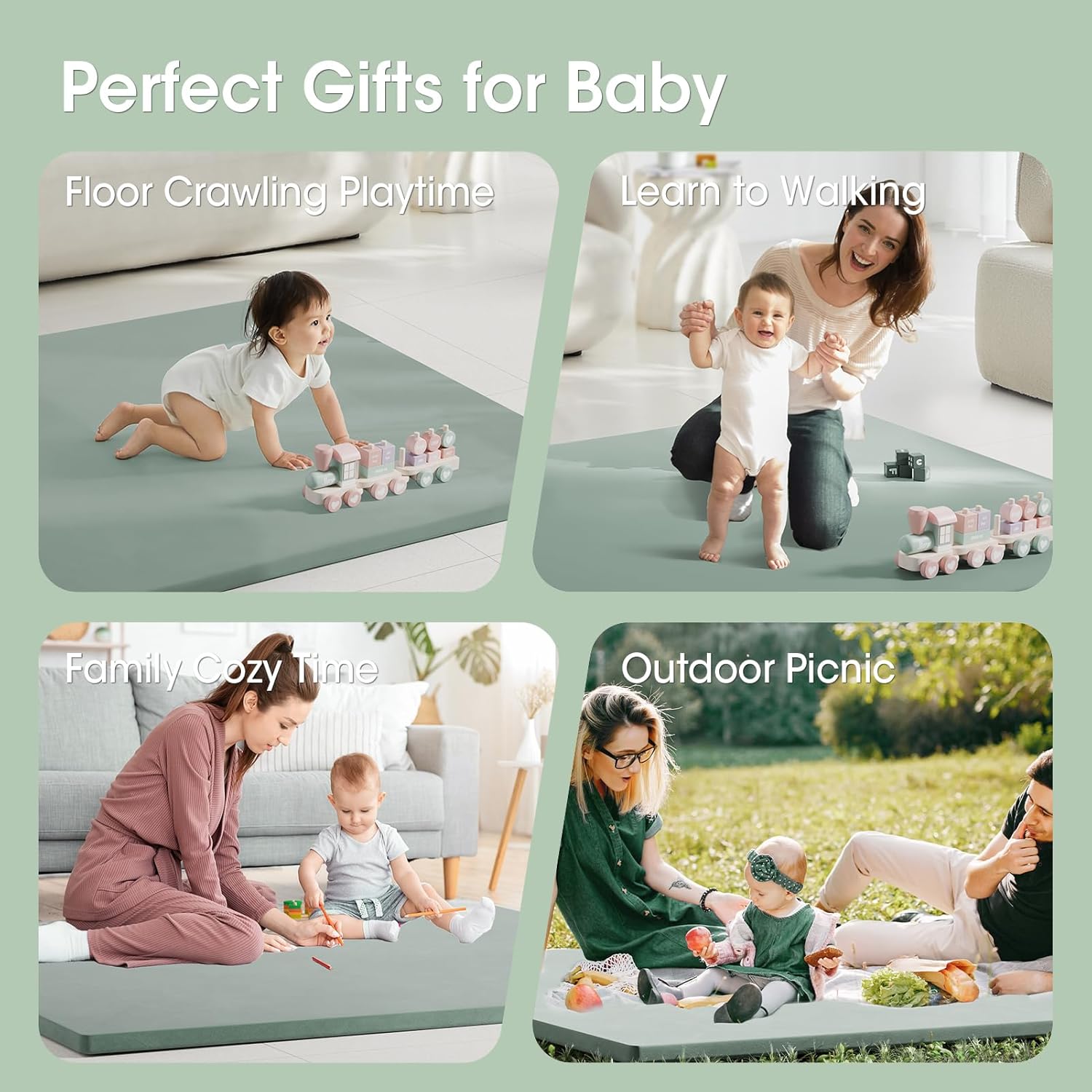 Keeping Your Baby Safe: Created specifically to provide a safe and comfortable playing space for your baby! This baby play mat is made of soft foam padding and skin-friendly vegan leather, allow the baby freely explore, play and grow on floor mat, making baby happy and parents at ease!
