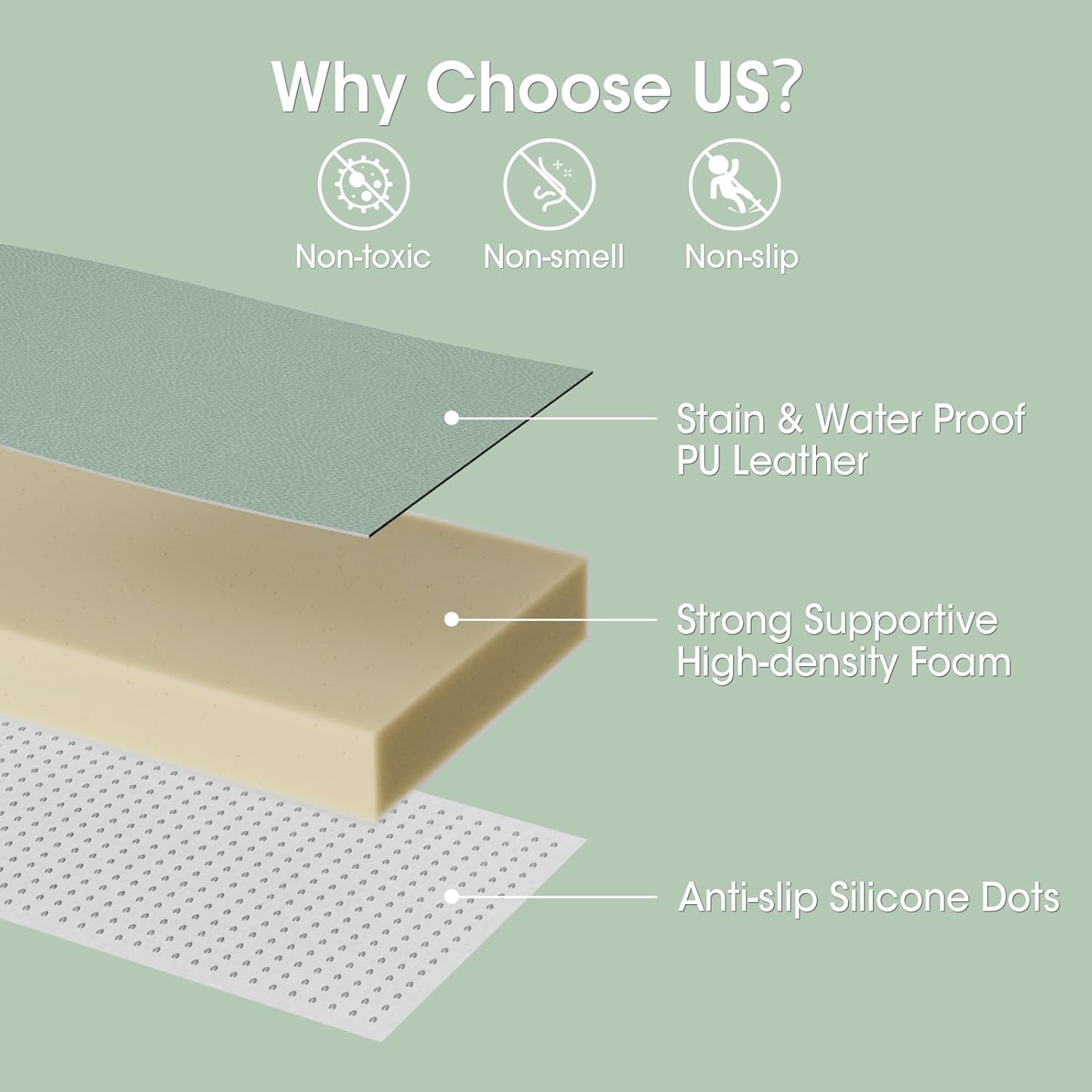 Durable Vegan Leather Design: Our baby floor play mat is made of high quality vegan leather, non-toxic and non-smell to ensure the safety of your 0+ month newborn child, more durable than traditional XPE mats while it is scratch-proof and waterproof, it will stay with your baby to grow up!