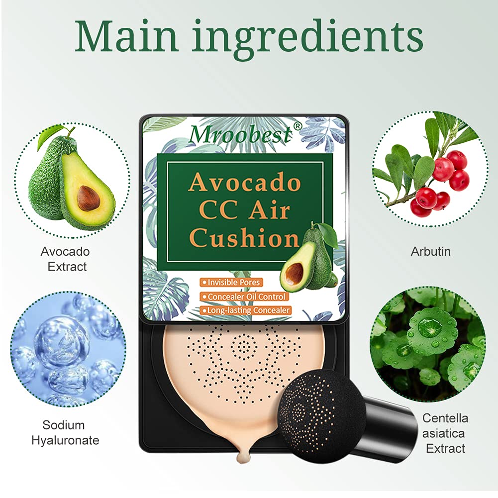 Our air cushion BB cream cream formula is mainly extracted from natural Avocado Extract, NO fargrance, NO mineral oil, NO heavy metal additives, NO alchohol, suitable for all types of skin, including sensitive,oily, dry, combination, acne, or even couperose skin.