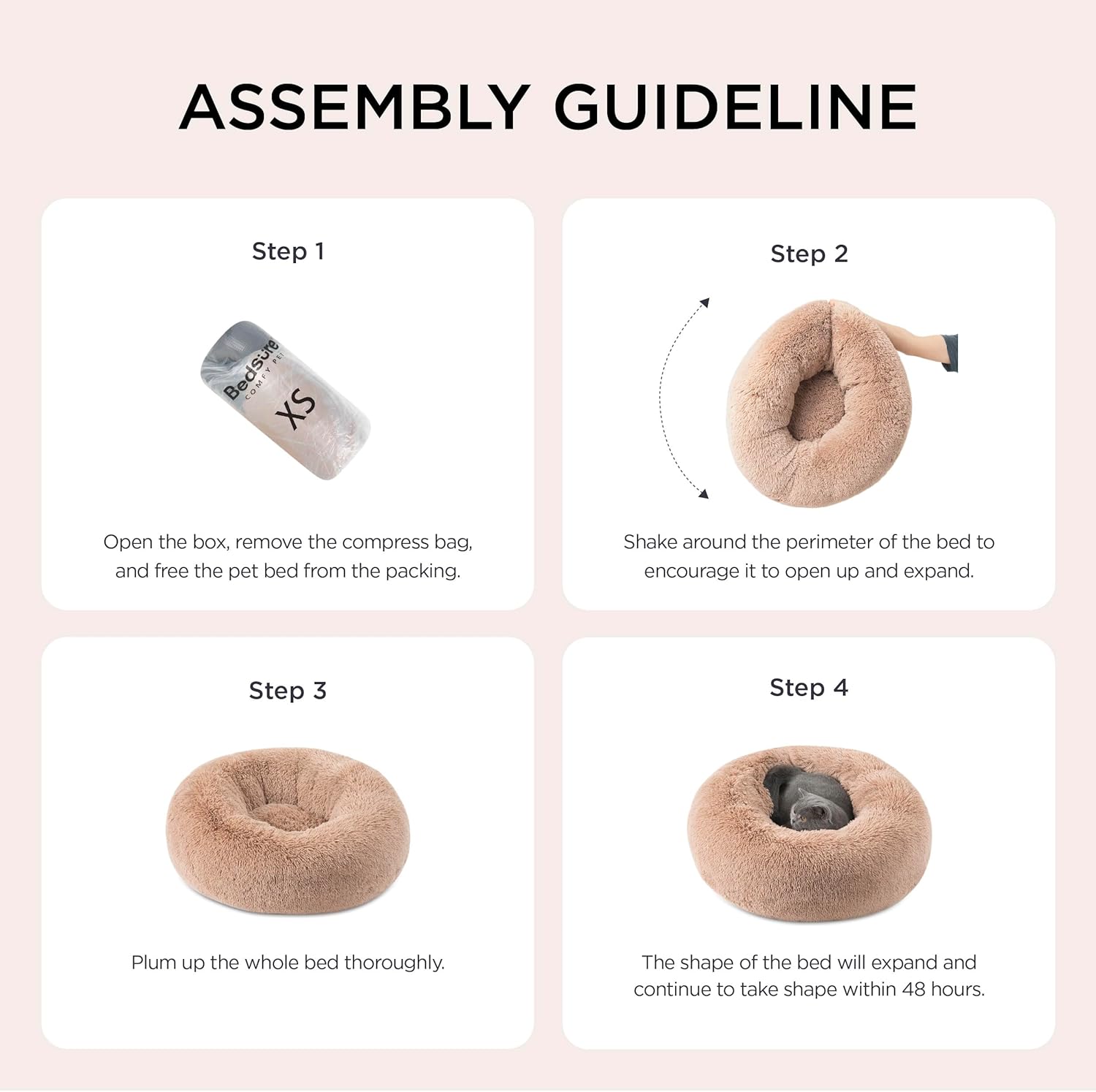 Oprah Daily Award-Winning Comfort:Recognized by Oprah Daily as the perfect donut dog bed for curl-up sleepers, this round calming pet bed is loved for its extra-fluffy faux fur, raised rim for furry heads, and cozy design that blends seamlessly into any home. Petite sizes (XS–M) are fully machine washable for added ease.