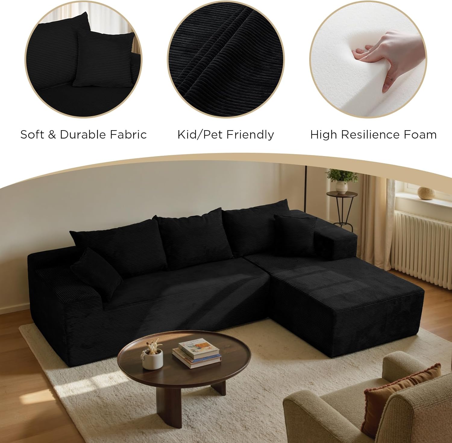 Be the first to review “Black Cloud Couch Sectional Sofa in Box with L-Shape Chaise,Modern Modular Couches Upholstered with Deep Seat for Living Room,No Assembly Required”