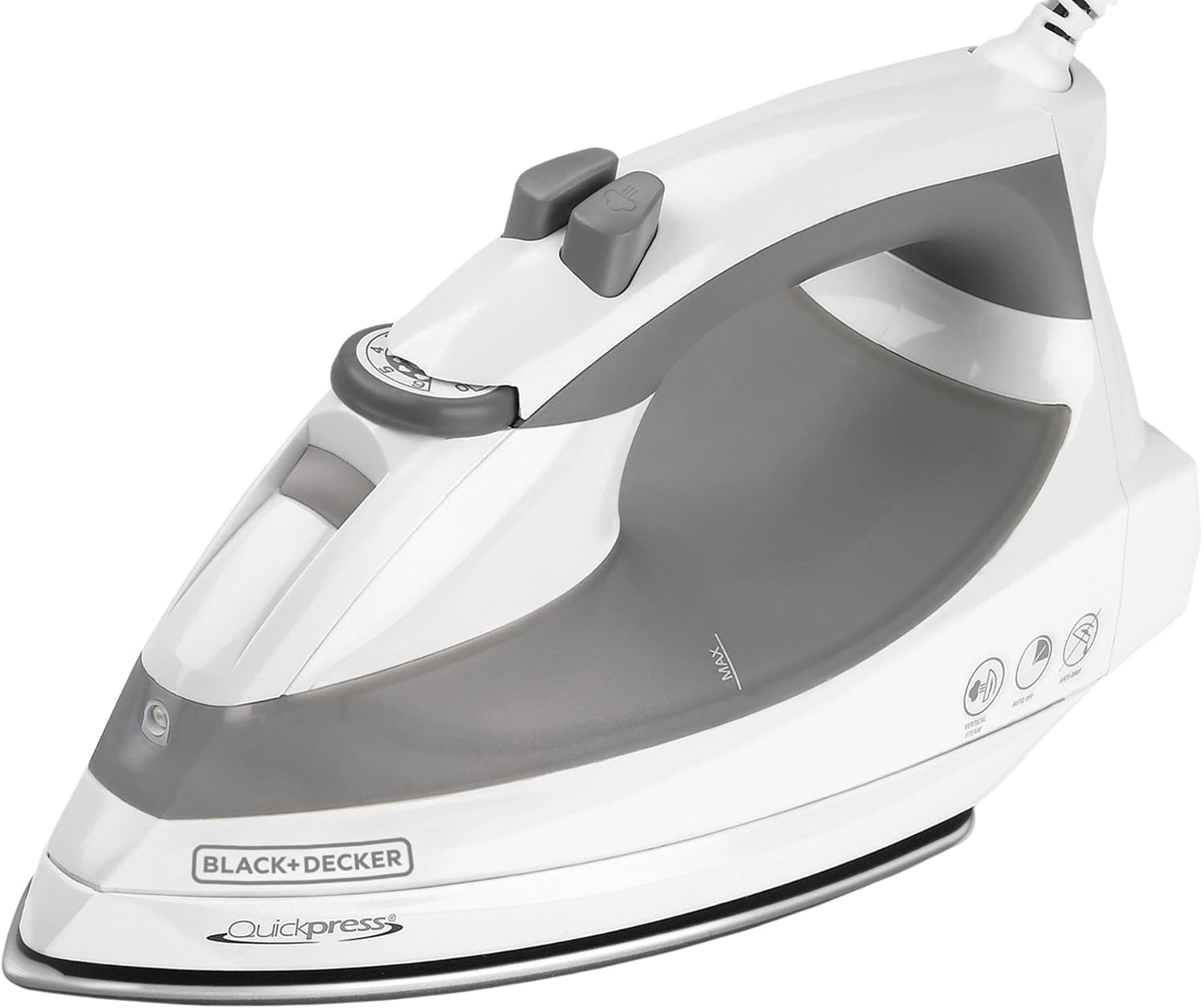 Make quick work of your ironing load with the BLACK + DECKER™ QuickPress Iron, featuring SmartSteam™ Technology. The stainless steel soleplate glides easily over all fabric types and the various steam settings let you find the perfect amount of moisture for getting rid of wrinkles on the ironing board or the hanger. Plus, 3-way auto shutoff provides added peace of mind with every use.