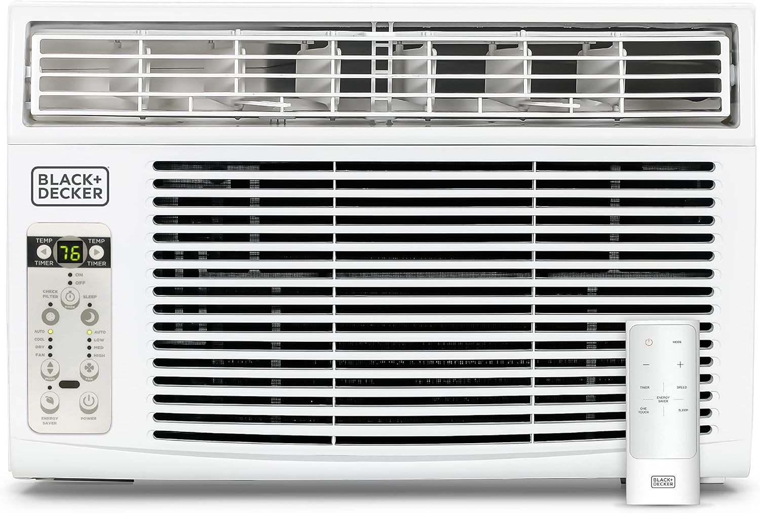 BLACK+DECKER Window Air Conditioner 8000 BTU, AC Window Unit Cools Up to 350 Square Feet, Window AC Unit with Remote Control, 3 Cooling Speeds and Fan Only Function, BD08WT6, White