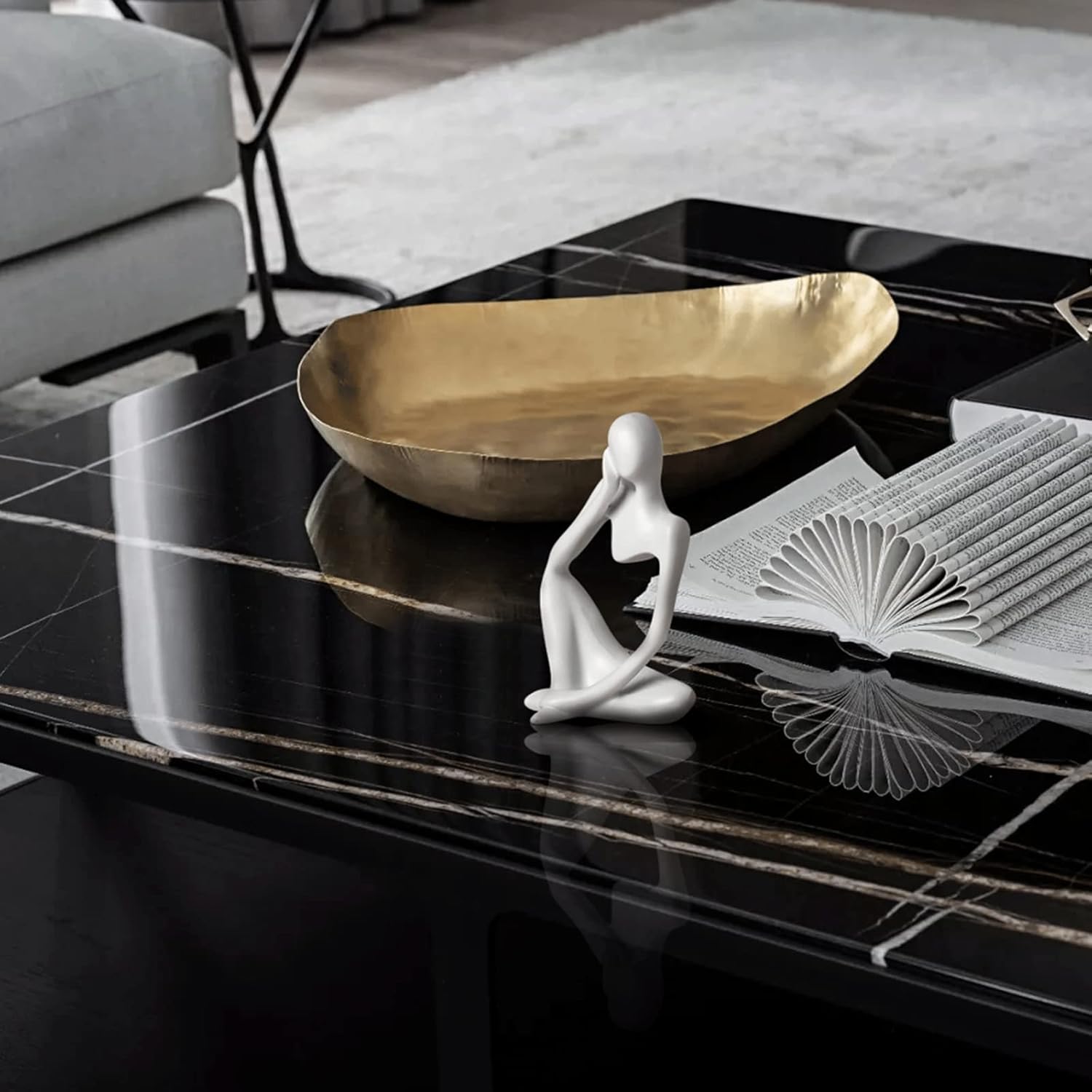 【The Thinker Statue Material】The Abstract Art Modern Decor Is Made Of Resin Materials As A Whole, The Surface Is Smooth And Comfortable To Touch And Easy To Clean, No Peculiar Smell, Non-Toxic And Harmless. The Handicrafts Of Modern And Abstract Art Show Texture, Simplicity And Generous Overall Light Luxury And Elegance.