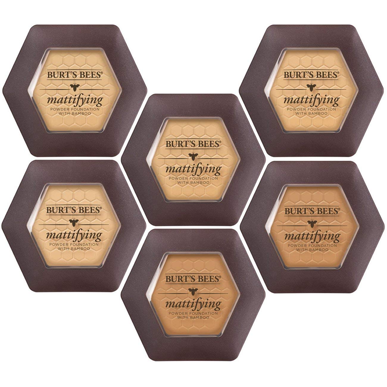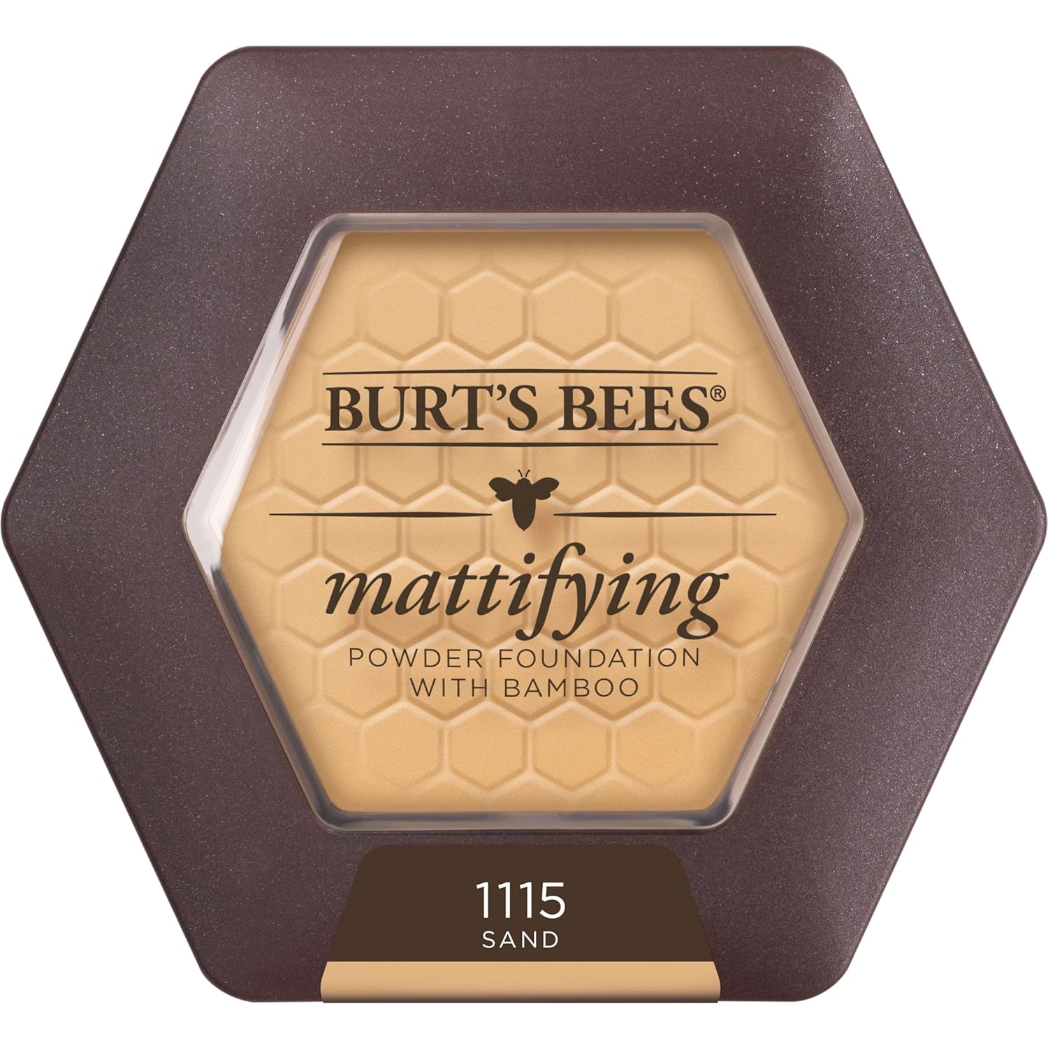 Shine from within, not on your skin. Burts Bees 100% Natural Origin Mattifying Powder Foundation in Sand controls shine with buildable and blendable coverage to give you a smooth and even skin tone. Lightweight and non-comedogenic, Burts Bees Mattifying Powder Foundation is perfect for oily or combination skin, effectively absorbing oil without drying out your skin. Made with Bamboo to blur imperfections, this mineral makeup blends easily to even out your skin. Available in six shades, Sand is ideal for medium to tan skin tones with cool undertones. Use the included custom sponge applicator and mirror to build coverage gradually. Burts Bees Mattifying Powder Foundation is formulated without parabens, phthalates, SLS, petrolatum or synthetic fragrances. Its dermatologist tested and never tested on animals.