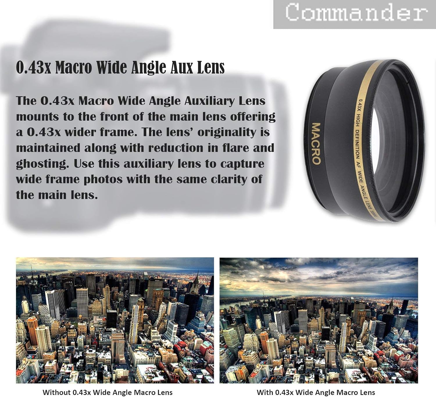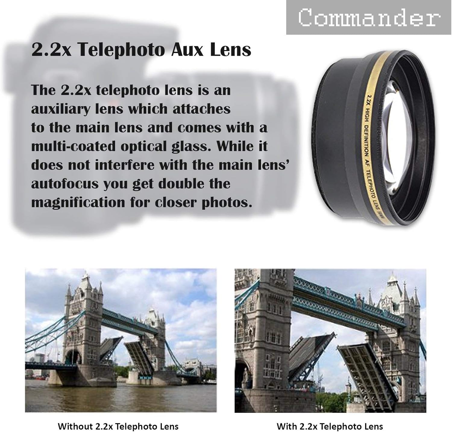 0.43x Auxiliary Wideangle Lens – it conveniently mounts to the front of your fixed or zoom lens, and allows you to capture a wider field of view, 2.2x Auxiliary Telephoto Lens – brings you twice as close to the action. Perfect for long-distance photo situations such as sporting events