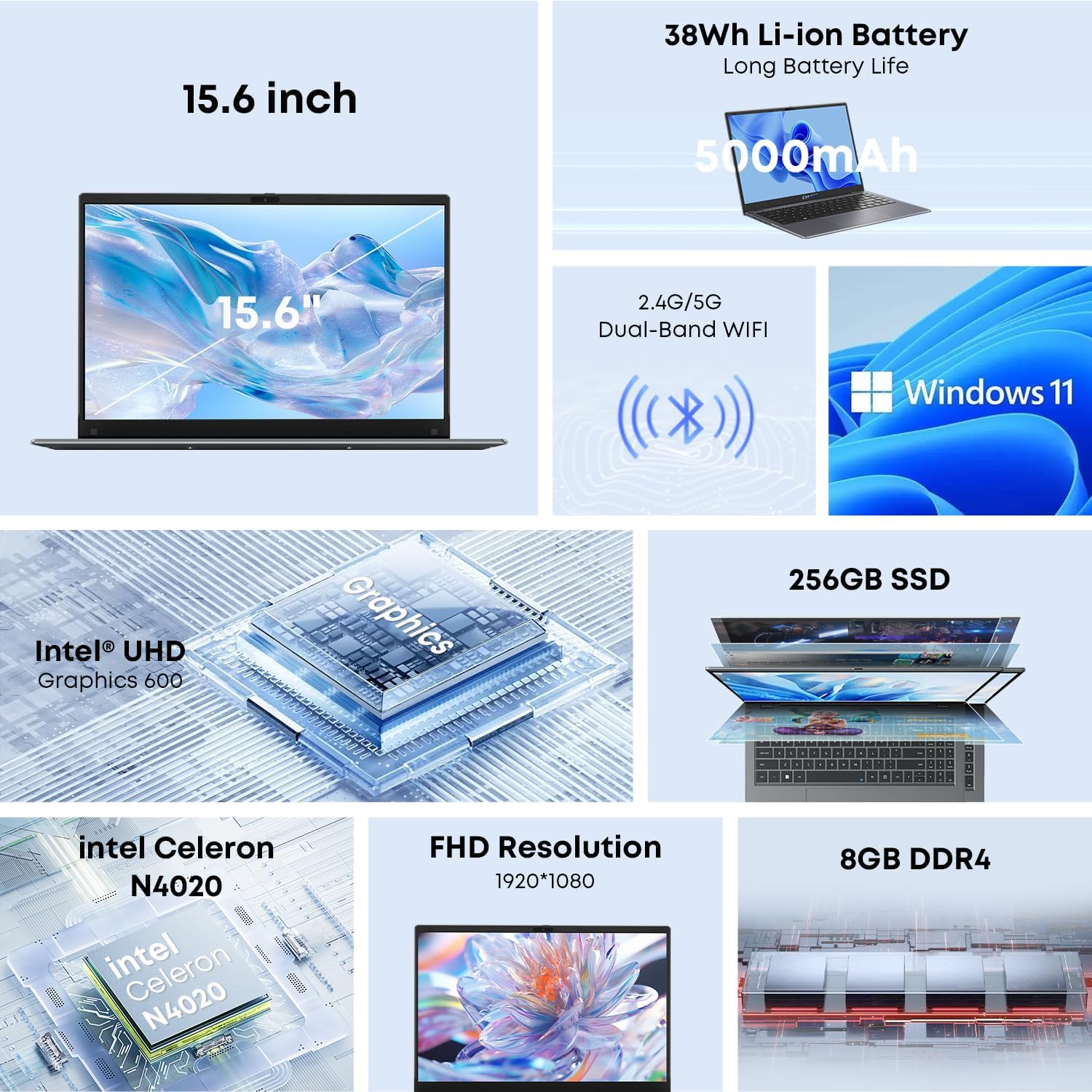 【Blazing Fast Performance】This Windows 11 laptop features 8GB of DDR4 RAM and a swift 256GB SSD, this business laptop offers a 50% performance boost compared to DDR3-equipped machines and ensures seamless system operation. Instantly access, edit, and share large media files, with the option to expand storage up to 1TB for all your needs.