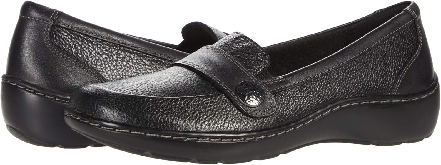 Clarks women Cora Daisy: This casual loafer style is marked by a full grain leather upper and a decorative strap detail. A pair of subtle elastic gores give it an immediate slip-on fit and Ultimate Comfort features including a long-lasting Ortholite footbed reduce impact and wick away moisture, making it perfect for barefoot wear.