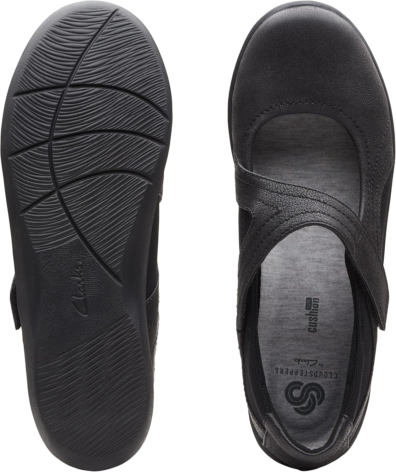 These are the shoes your feet have been dreaming of. From its soft fabric linings to its ortholite cushioned foot bed and super lightweight, shock-absorbing eva outsoles, it adds comfort to every step. Slip on this casual Mary-jane from the Clarks cloud steppers collection and take on your busy day in style.