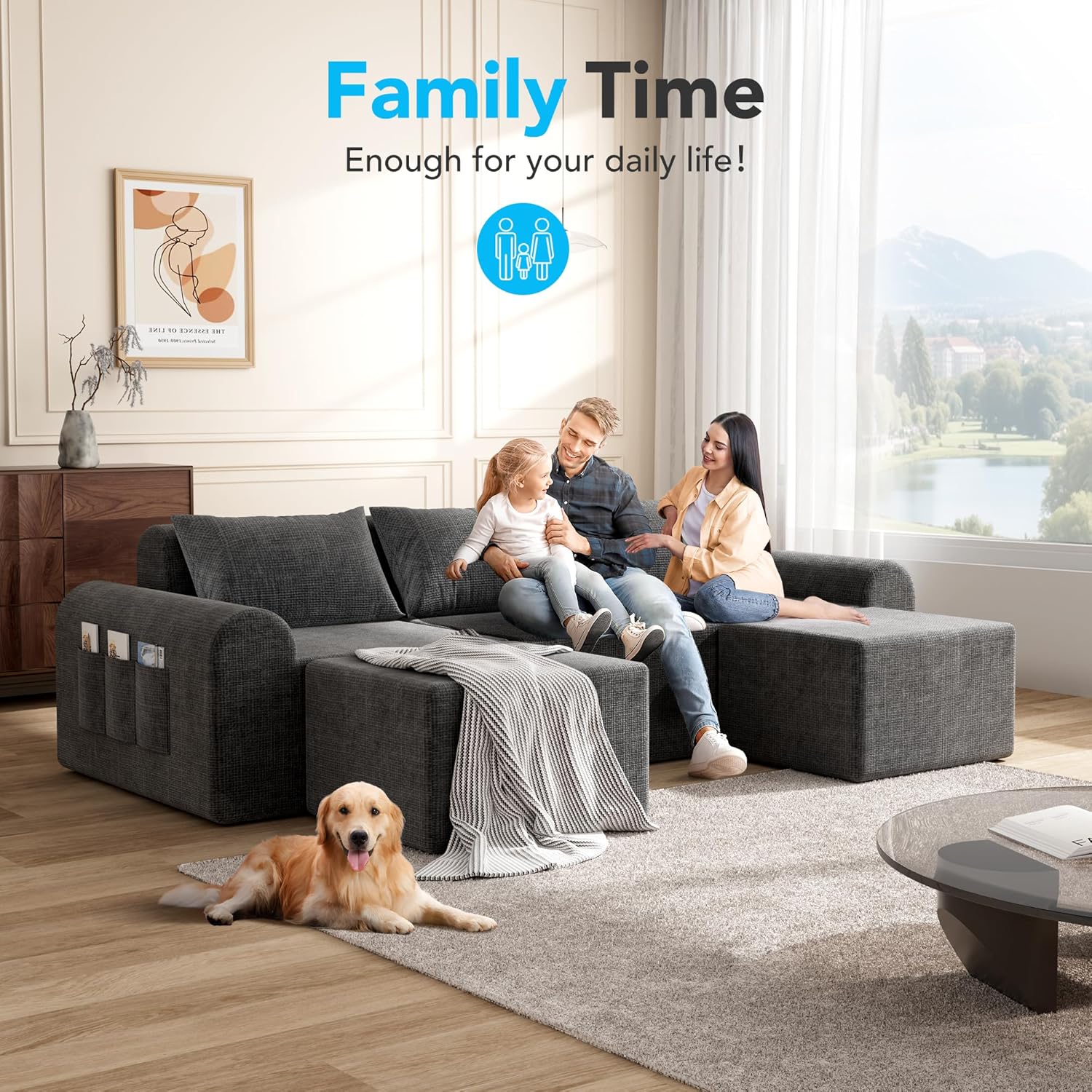 Deep Seat Couches with Ottoman – Experience exceptional comfort with our spacious sofa, featuring a 23.6″ seat depth. The movable ottoman can be a chaise lounge is perfect for relaxing, designed with high-resilience foam for superior support and long-lasting durability, ensuring a luxurious seating experience.