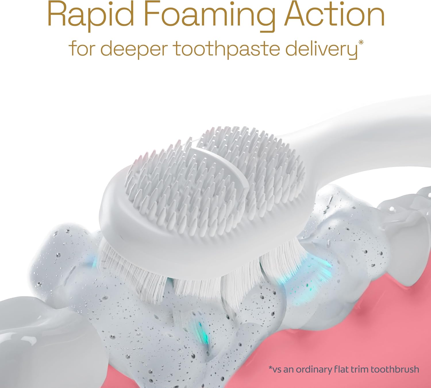 The Colgate Total Foaming Clean Toothbrush features 5000+ medium, high density bristles for rapid foaming to clean hard to reach spaces when you brush